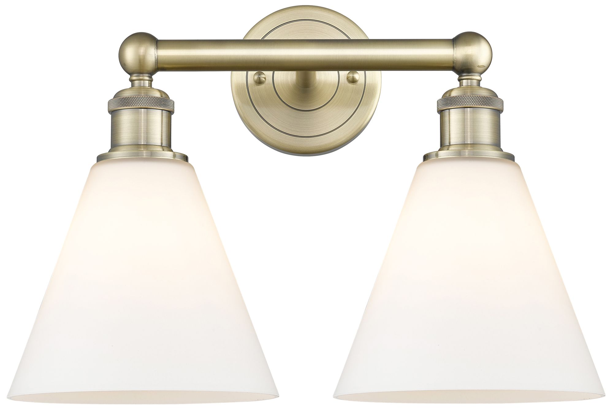 Berkshire 17"W 2 Light Antique Brass Bath Vanity Light With White Shad
