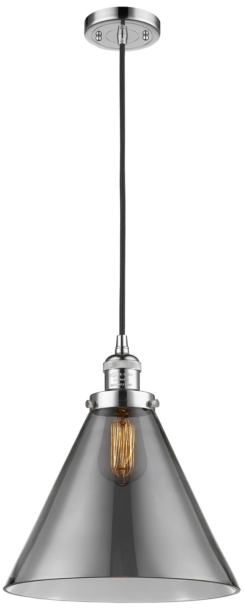 Franklin Restoration Cone 12" Chrome Corded Mini Pendant w/ Smoke Shad
