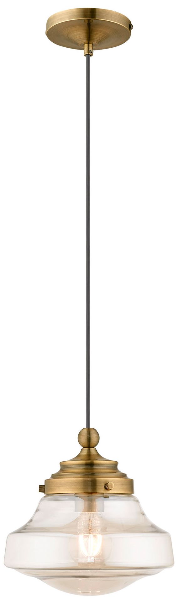 Graciela 9" Wide Antique Brass Schoolhouse Mini Pendant