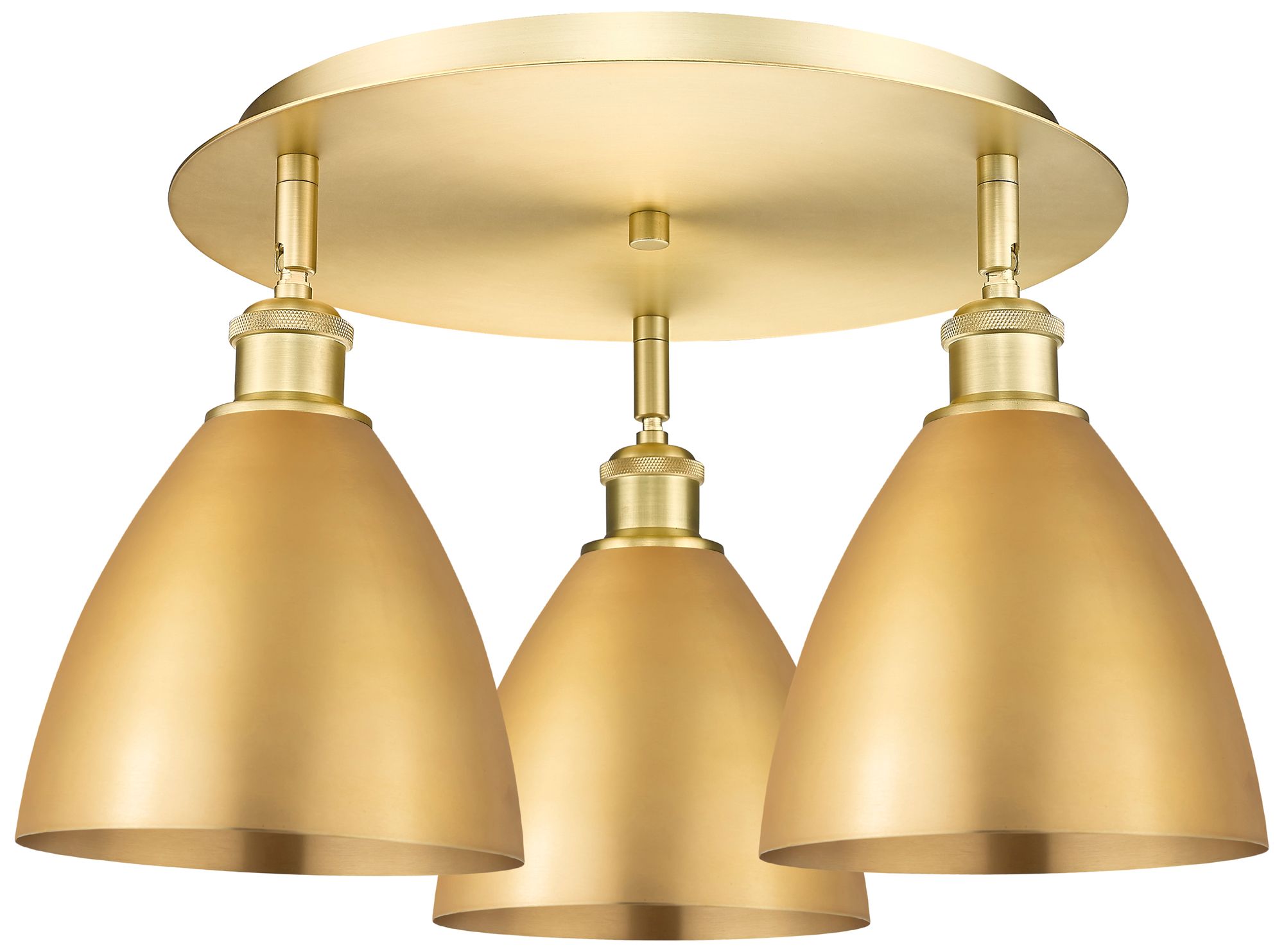 Ballston Dome 19.25"W 3 Light Satin Gold Flush Mount With Satin Gold S