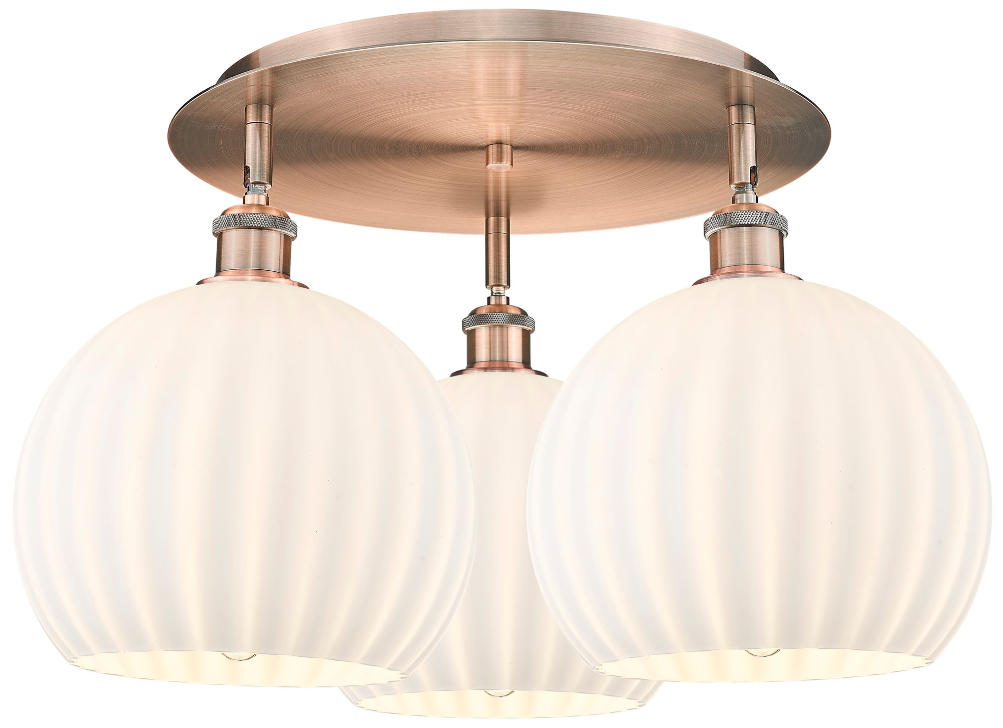 Ballston 21.75"W 3 Light Antique Copper Flush Mount w/ White Venetian