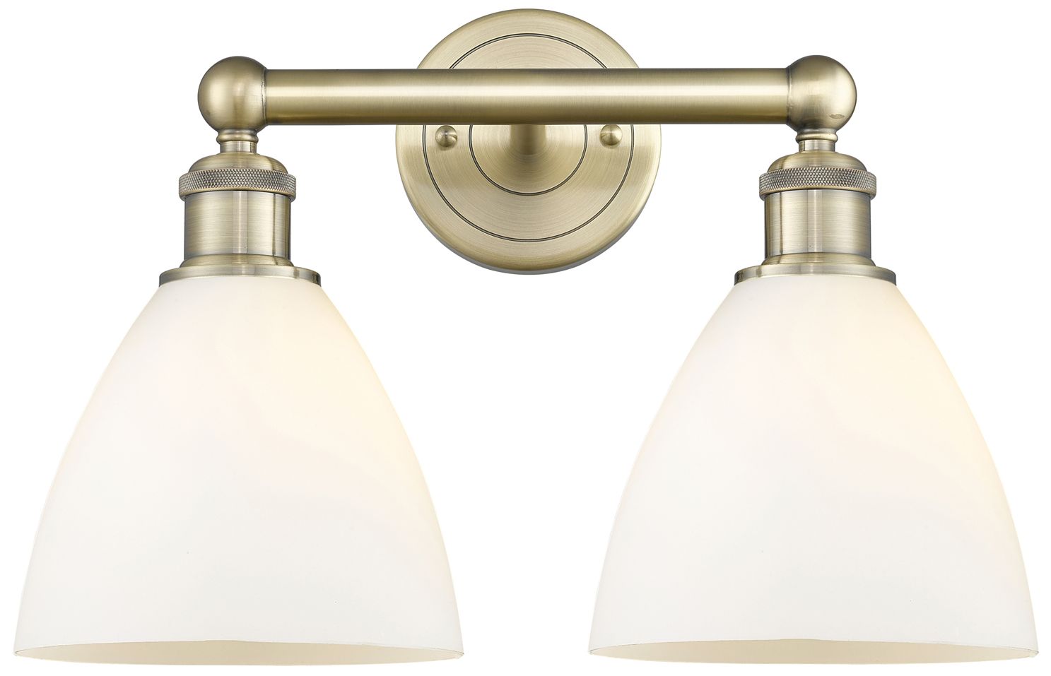 Bristol Glass 16.5"W 2 Light Antique Brass Bath Light With White Shade