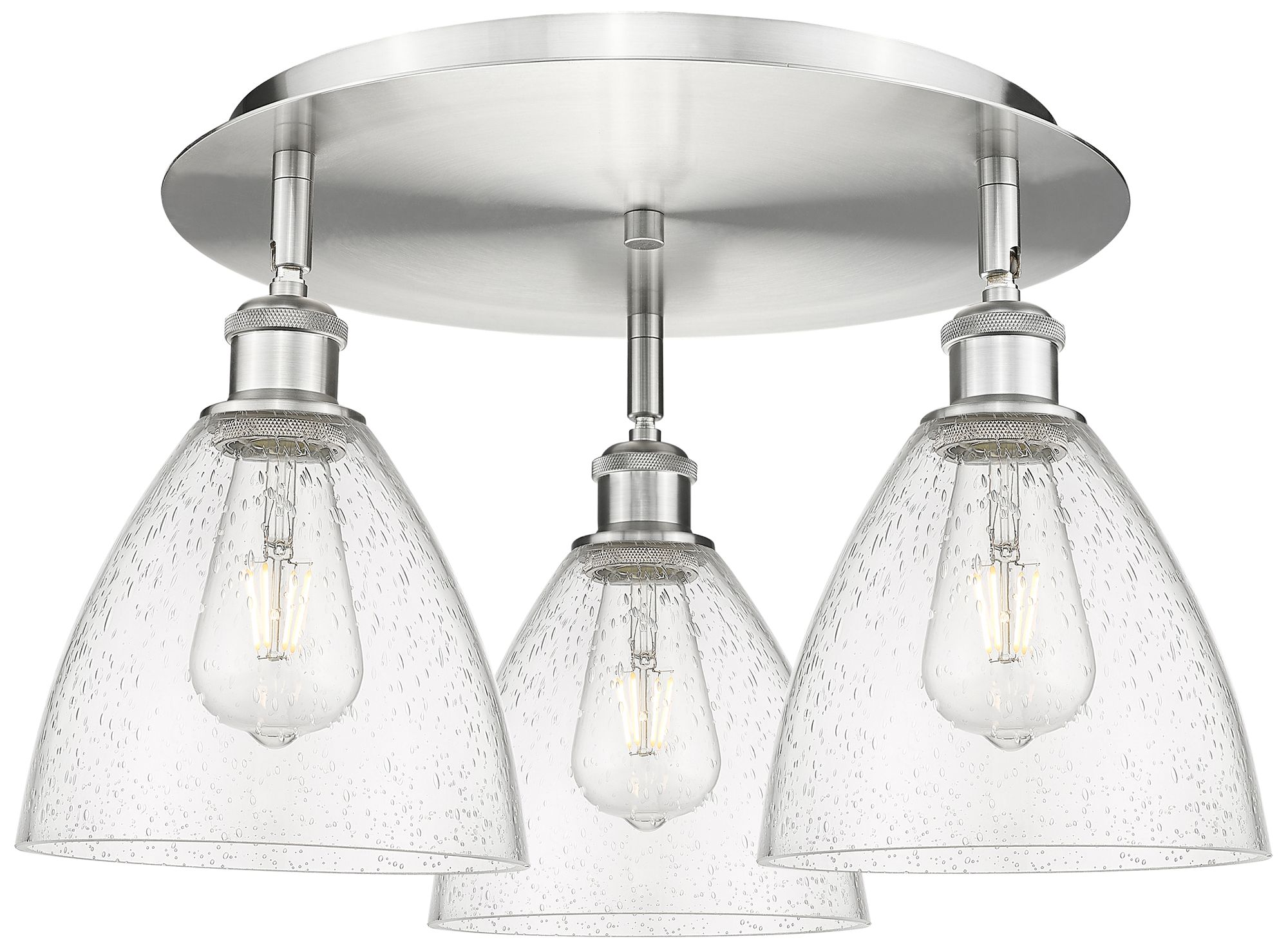 Bristol Glass 19.25"W 3 Light Satin Nickel Flush Mount w/ Seedy Glass