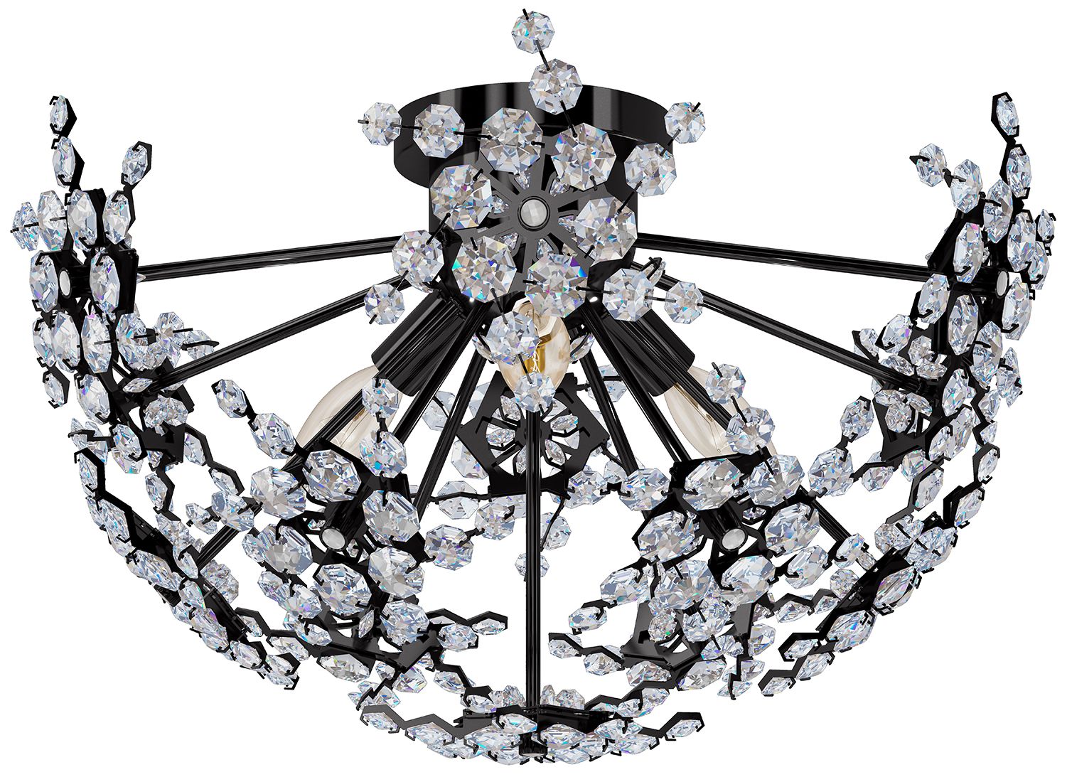 Esteracae 11"H x 18"W 3-Light Crystal Semi-Flush Mount in Jet Bla