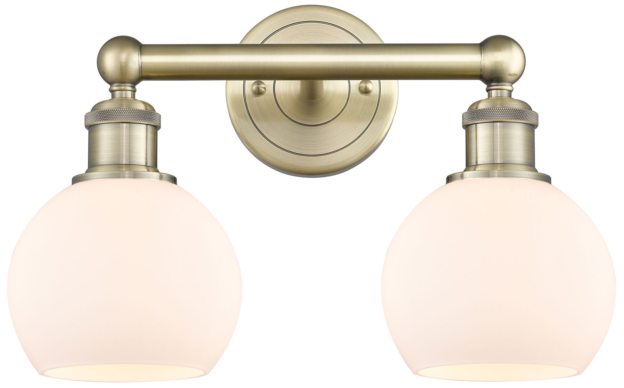 Athens 15"W 2 Light Antique Brass Bath Vanity Light With Matte White S