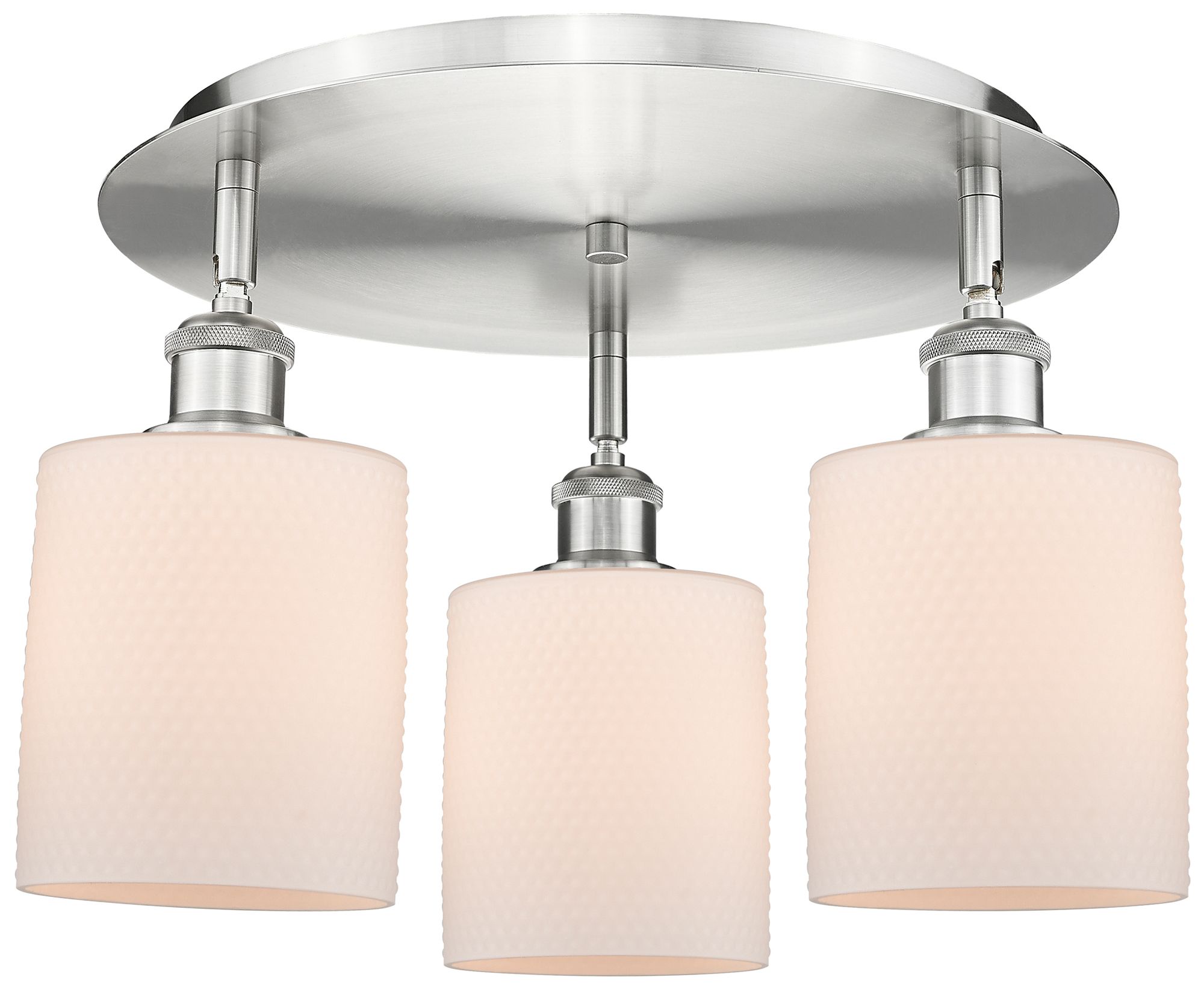 Cobbleskill 17.75"W 3 Light Satin Nickel Flush Mount w/ White Shade