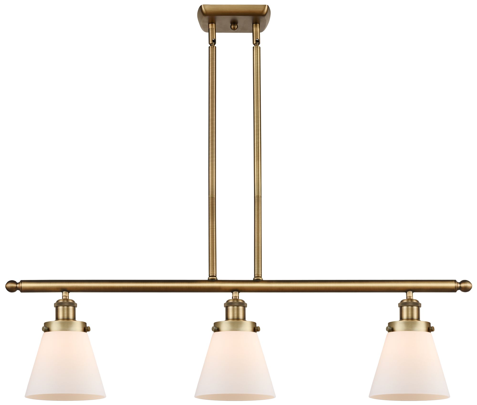 Cone 36" Wide 3 Light Brushed Brass Island Light w/ Matte White Shade