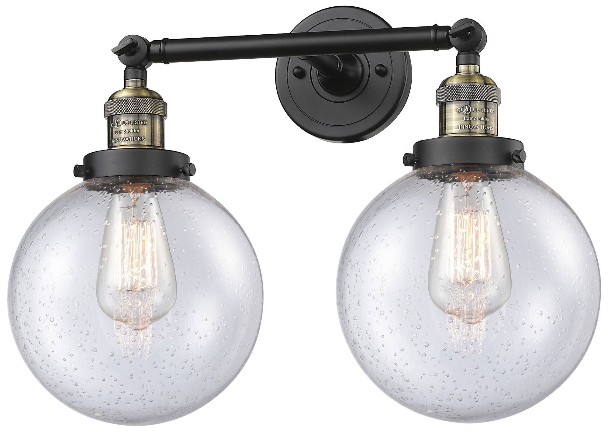 Beacon 19" 2-Light Black Antique Brass Bath Light w/ Seedy Shade