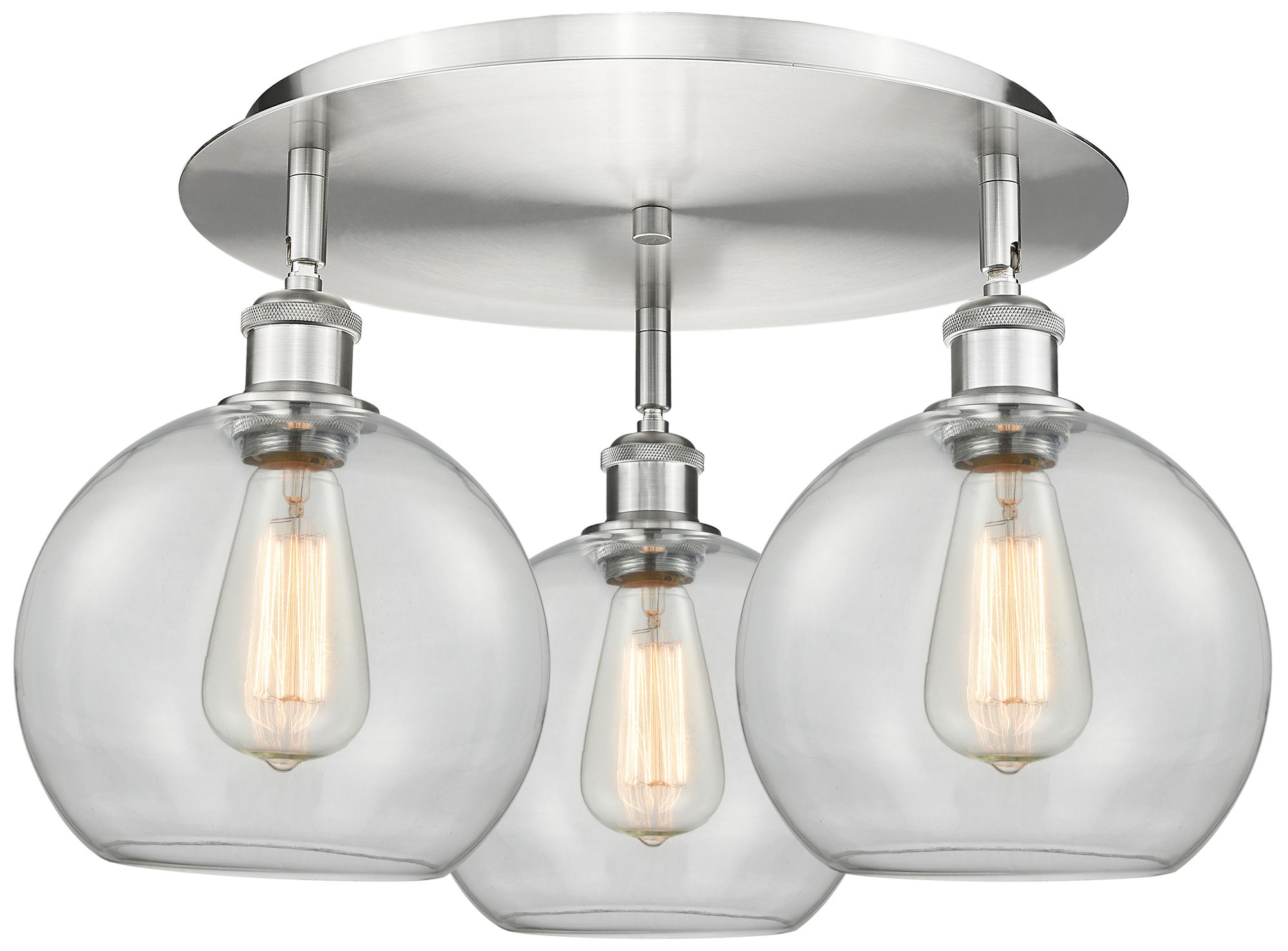 Athens 19.75" Wide 3 Light Satin Nickel Flush Mount With Clear Glass S