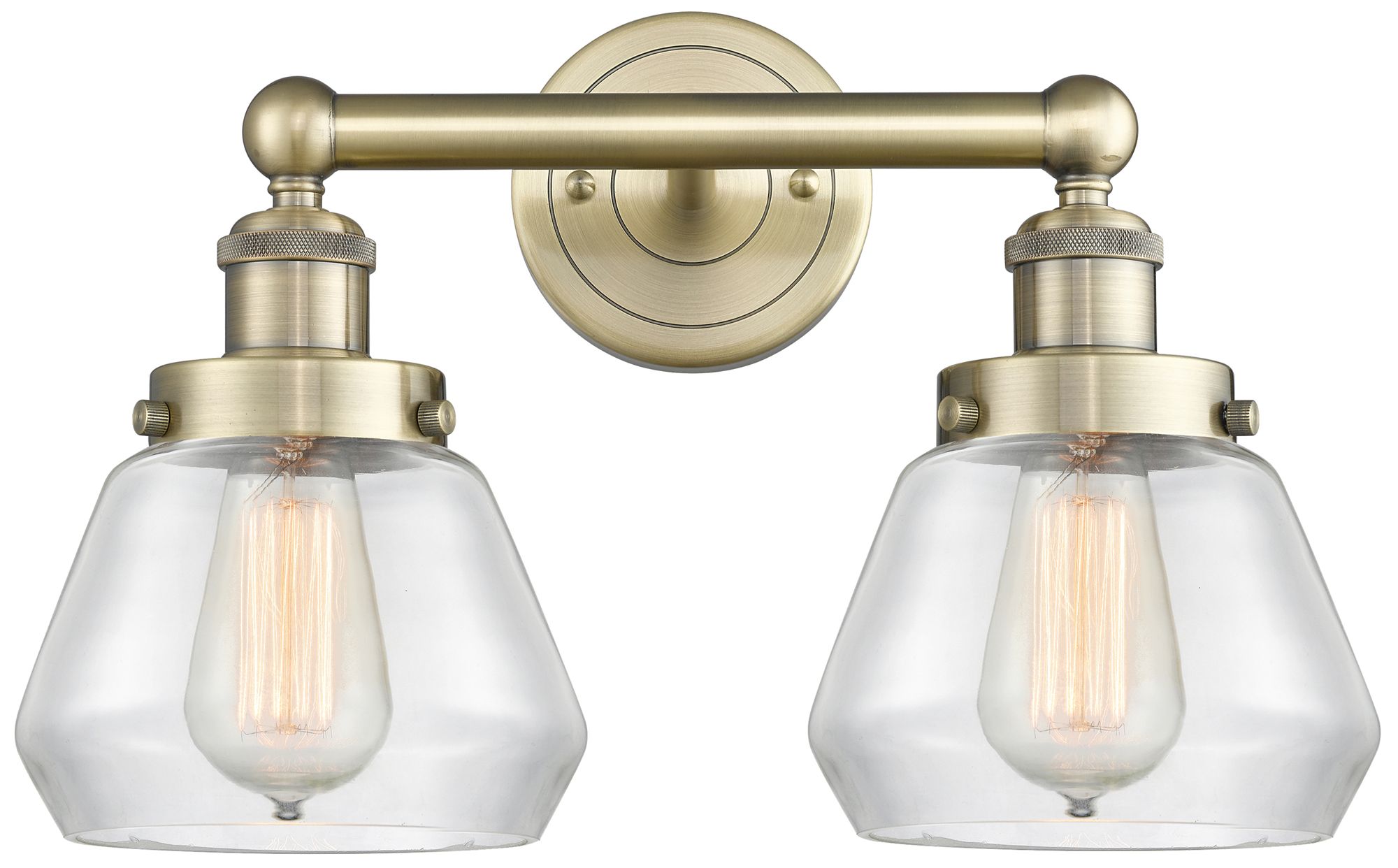 Edison Fulton 15.5"W 2 Light Antique Brass Bath Light With Clear Shade