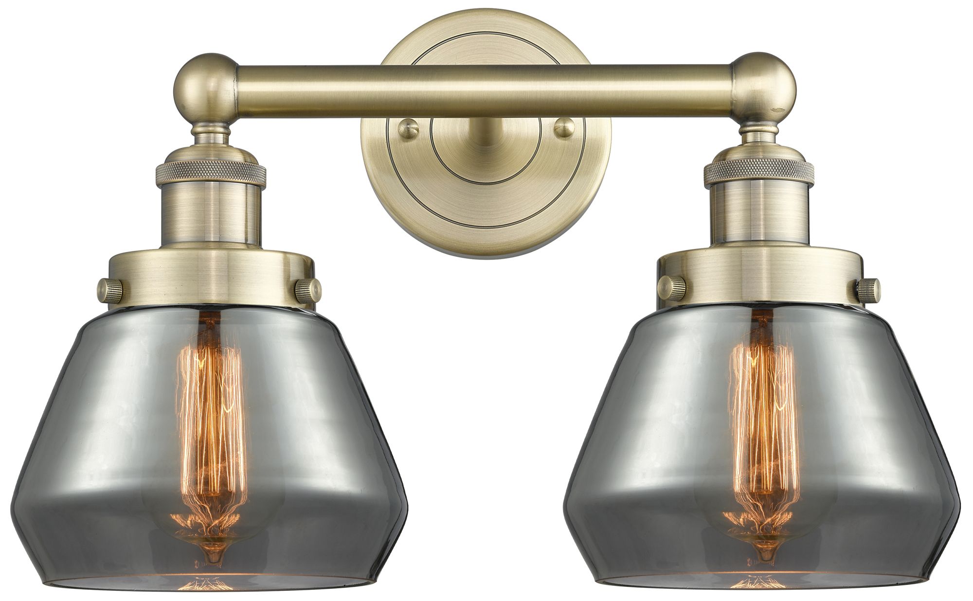 Edison Fulton 15.5"W 2 Light Antique Brass Bath Light With Smoke Shade