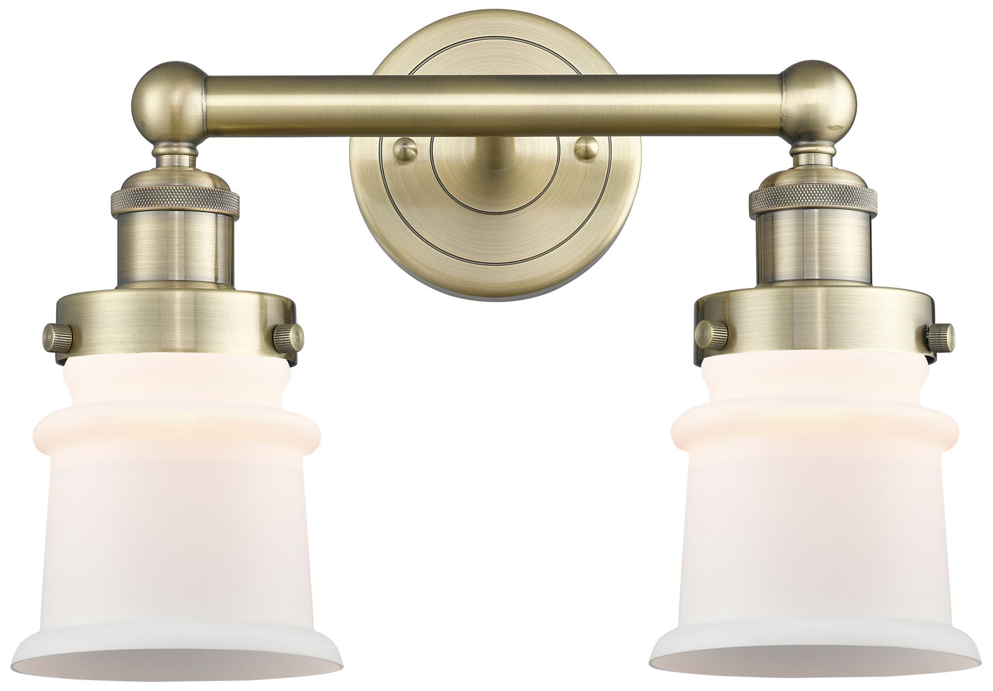 Canton 14.25"W 2 Light Antique Brass Bath Vanity Light With White Shad
