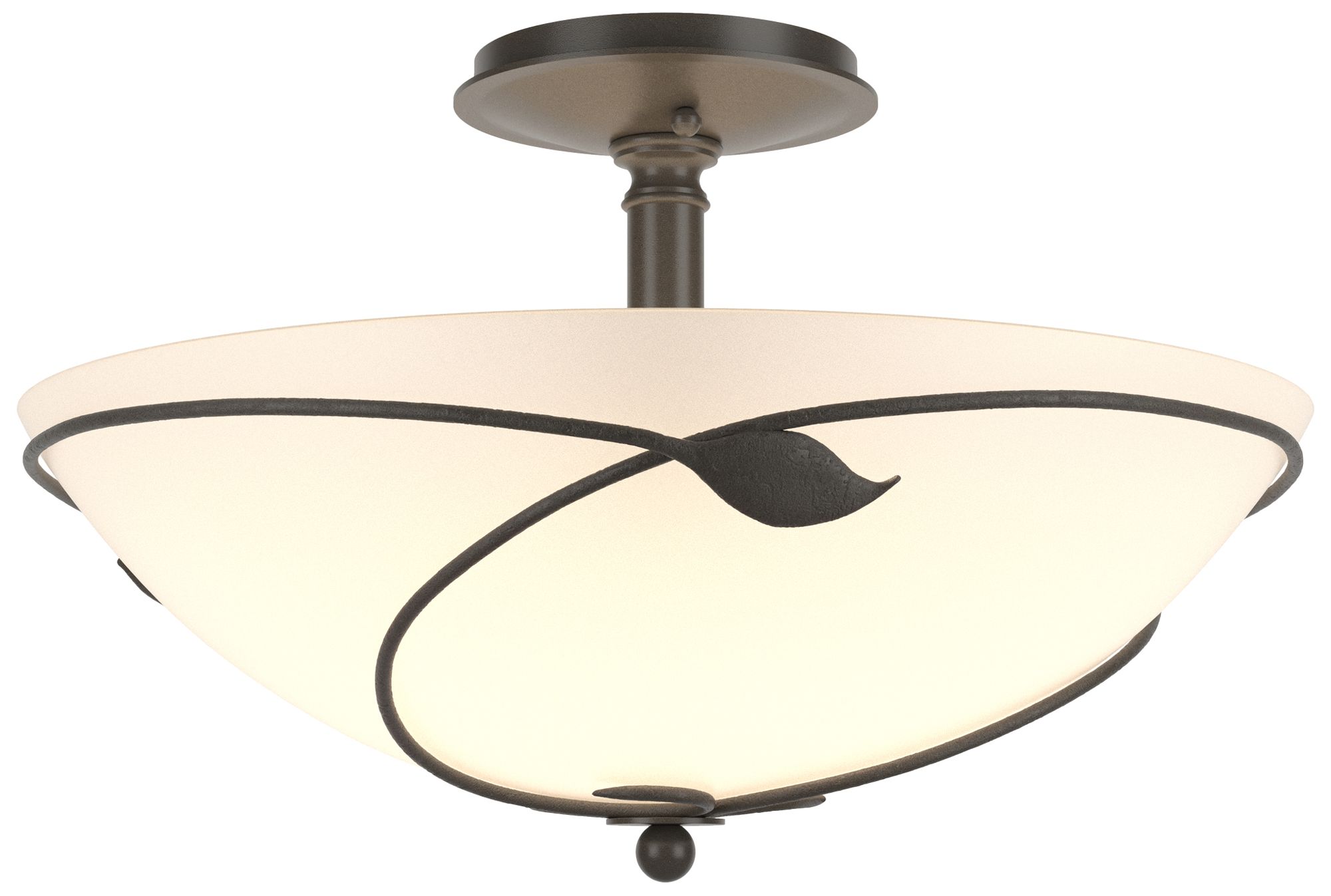 Forged Leaves 16" Wide Large Dark Smoke Semi-Flush With Opal Glass Sha