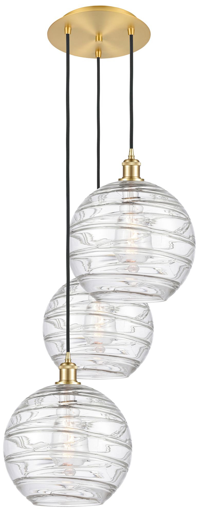 Athens 18.75"W 3 Light Satin Gold Multi-Pendant With Clear Deco Swirl