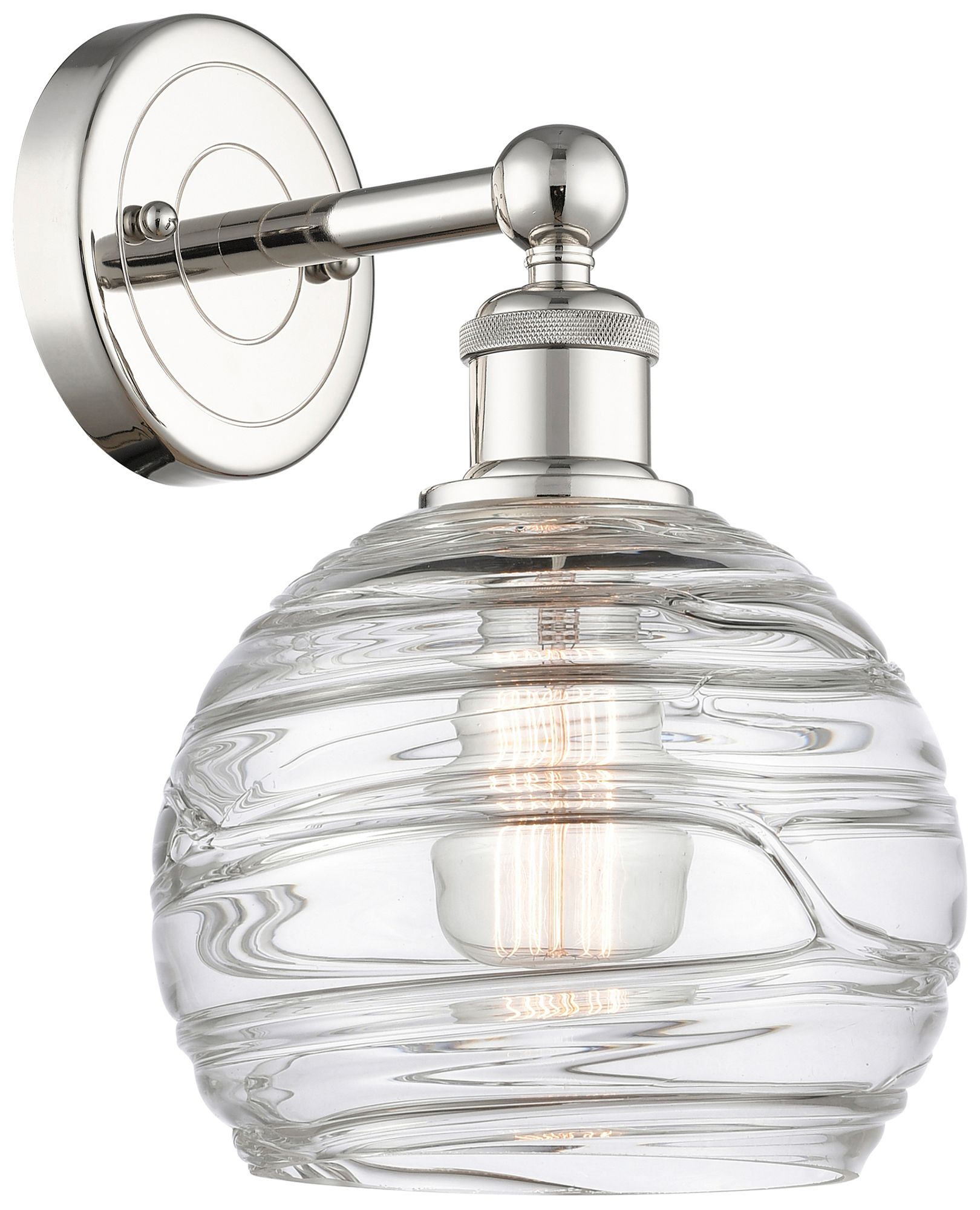 Athens 3" High Polished Nickel Sconce With Deco Swirl Shade