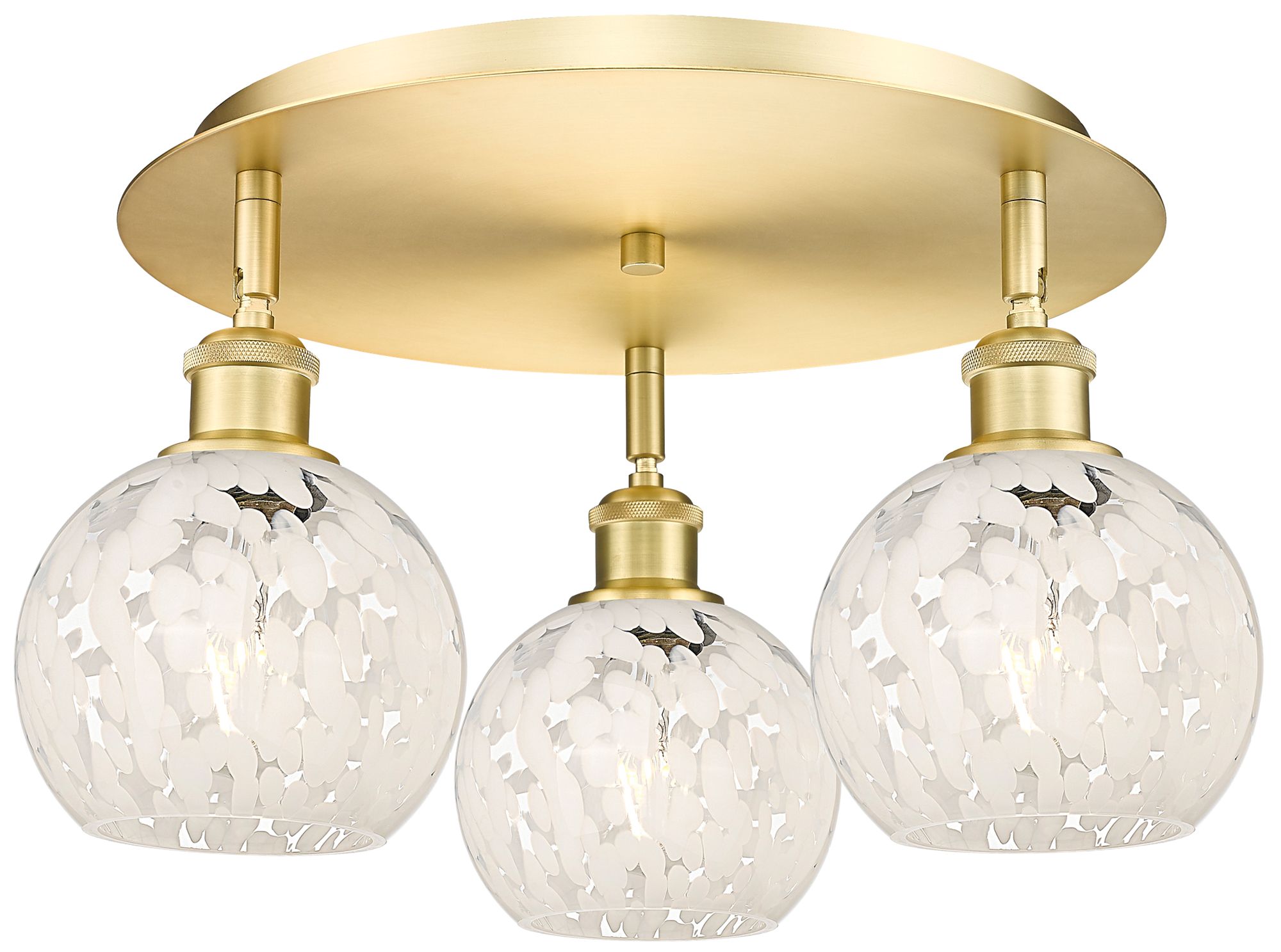 Ballston 17.75"W 3 Light Satin Gold Flush Mount w/ White Mouchette Sha