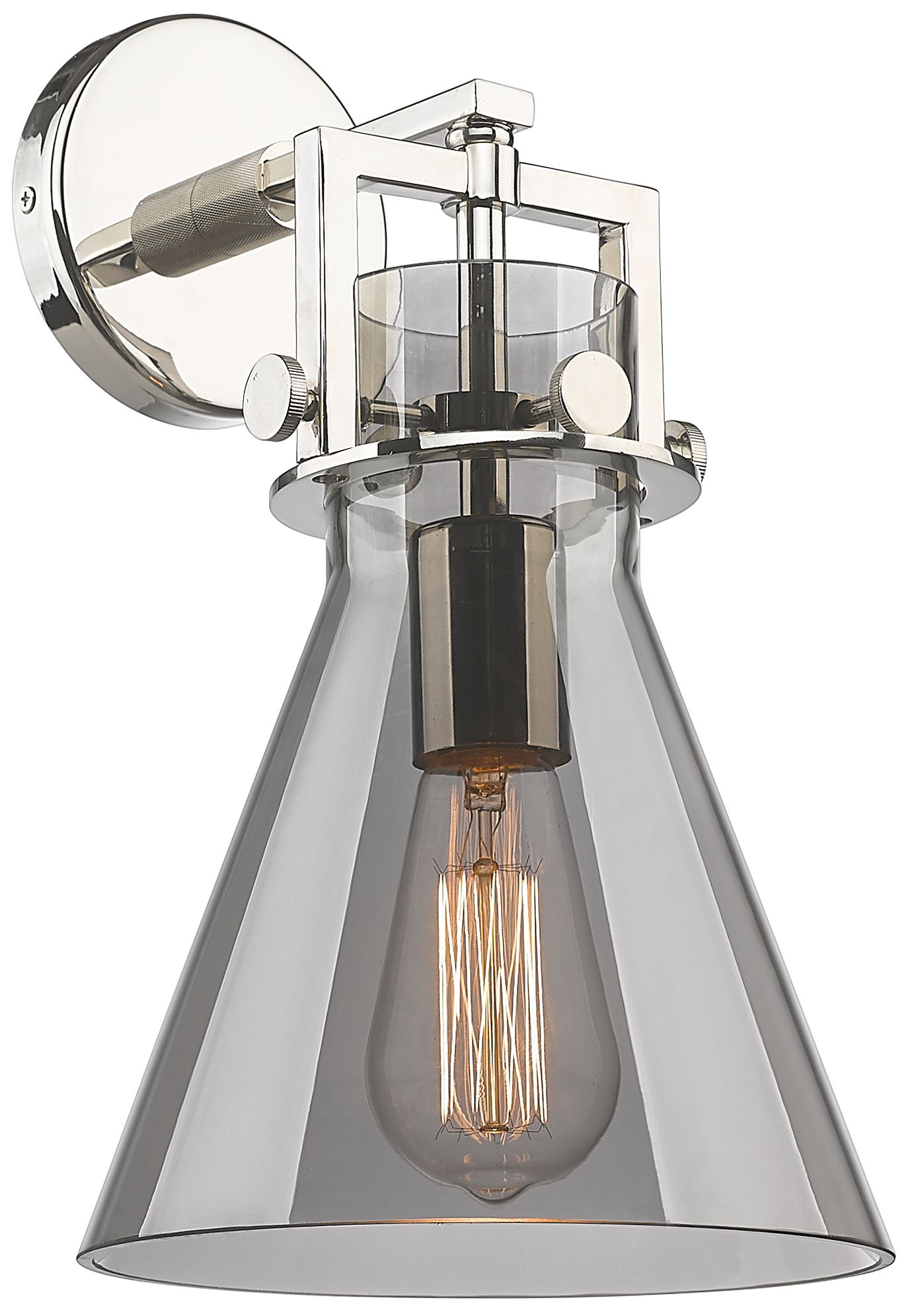 Newton Cone 14" High Polished Nickel Sconce With Smoke Shade