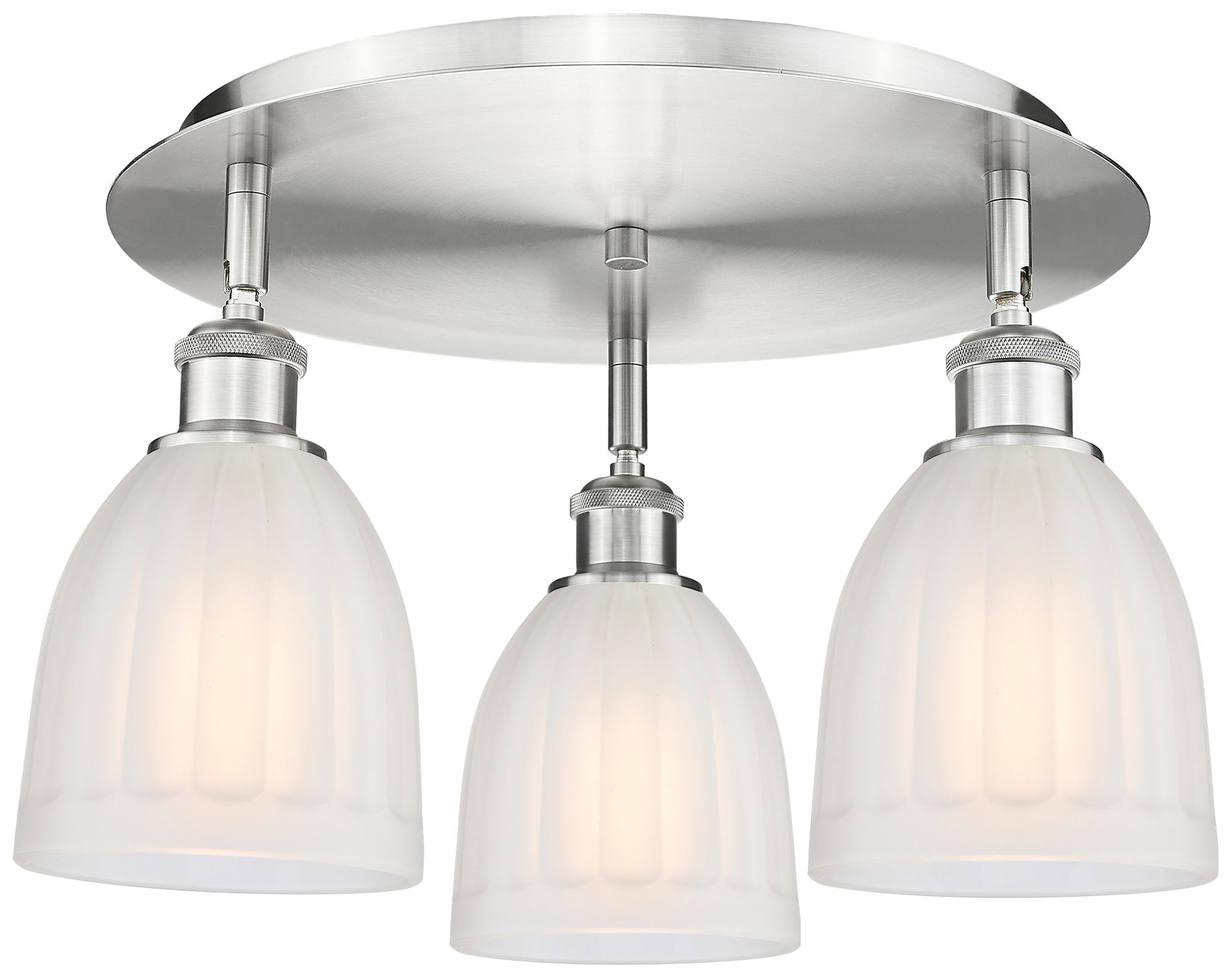 Brookfield 17.5"W 3 Light Satin Nickel Flush Mount With White Glass Sh