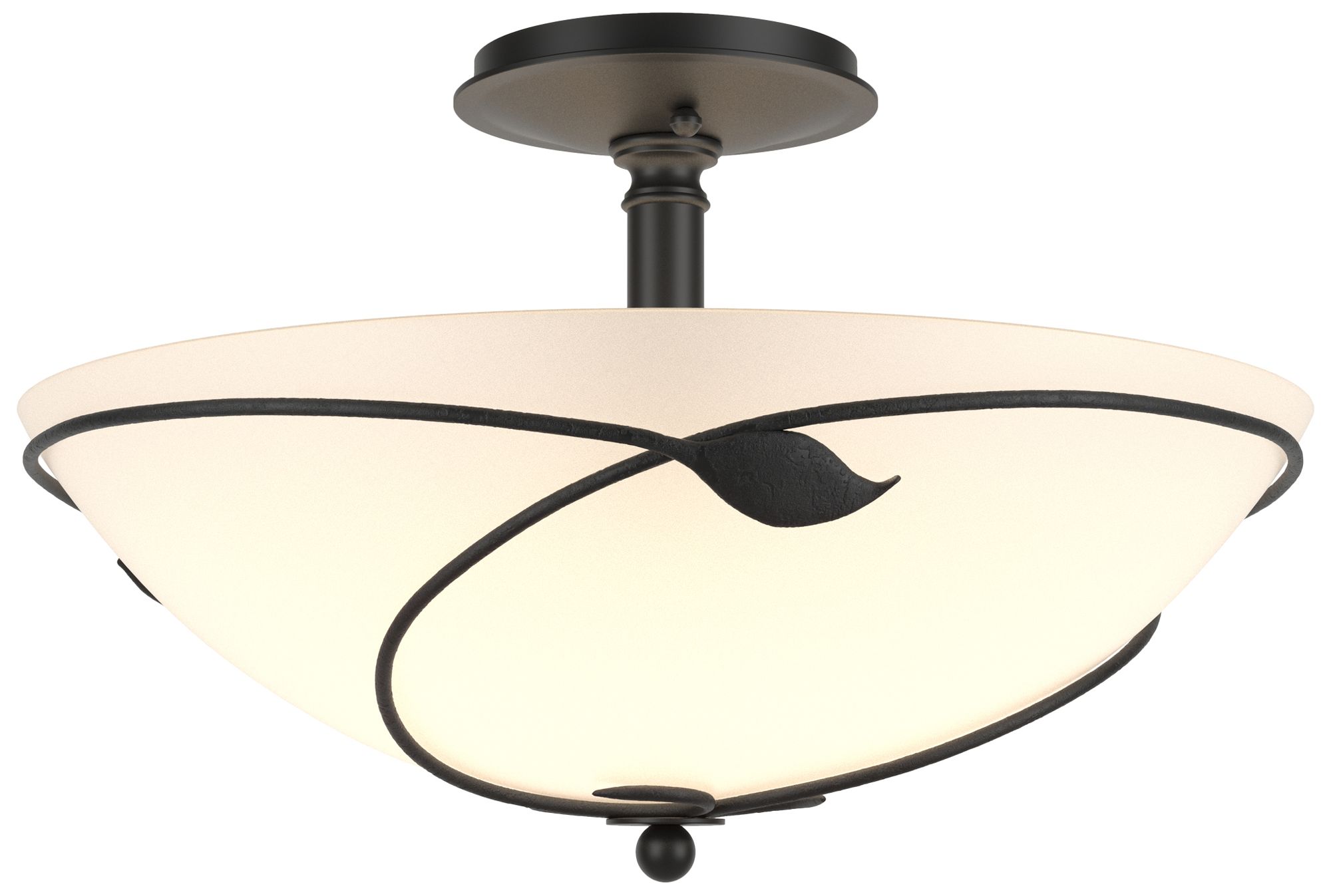 Forged Leaves 16" Wide Large Black Semi-Flush With Opal Glass Shade