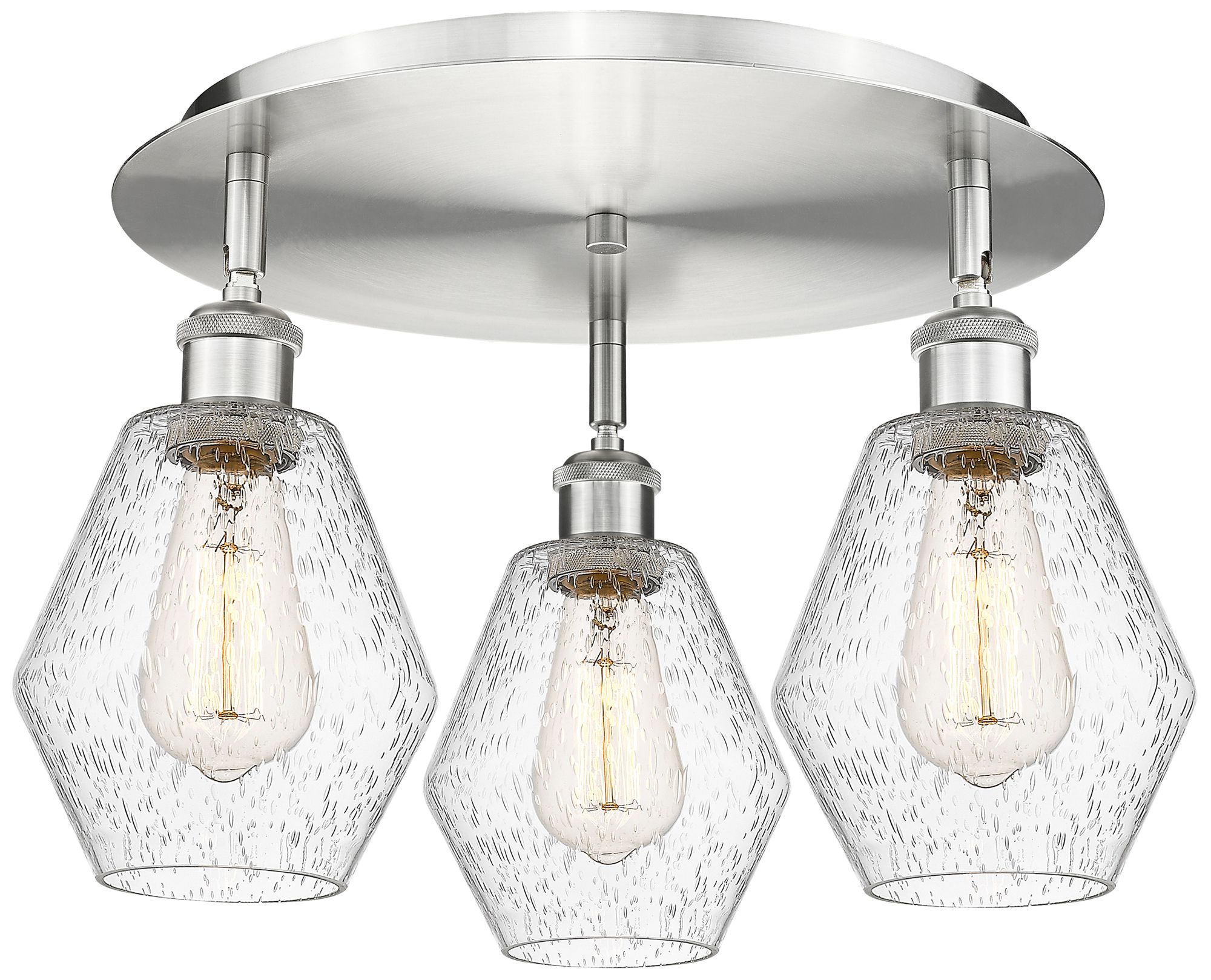 Cindyrella 17.75"W 3 Light Satin Nickel Flush Mount With Seedy Glass S