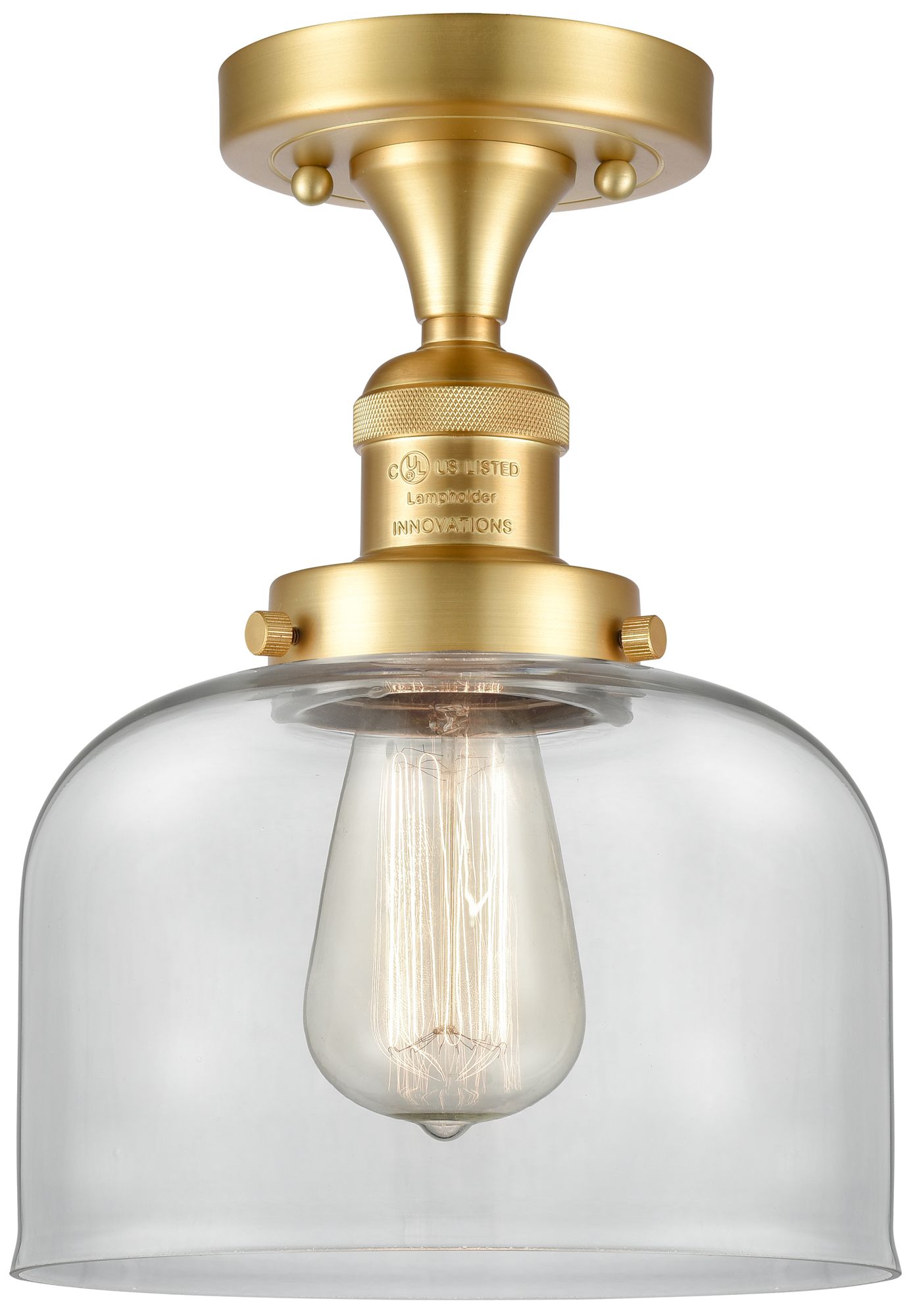 Bell 8" Satin Gold Semi Flush Mount w/ Clear Shade