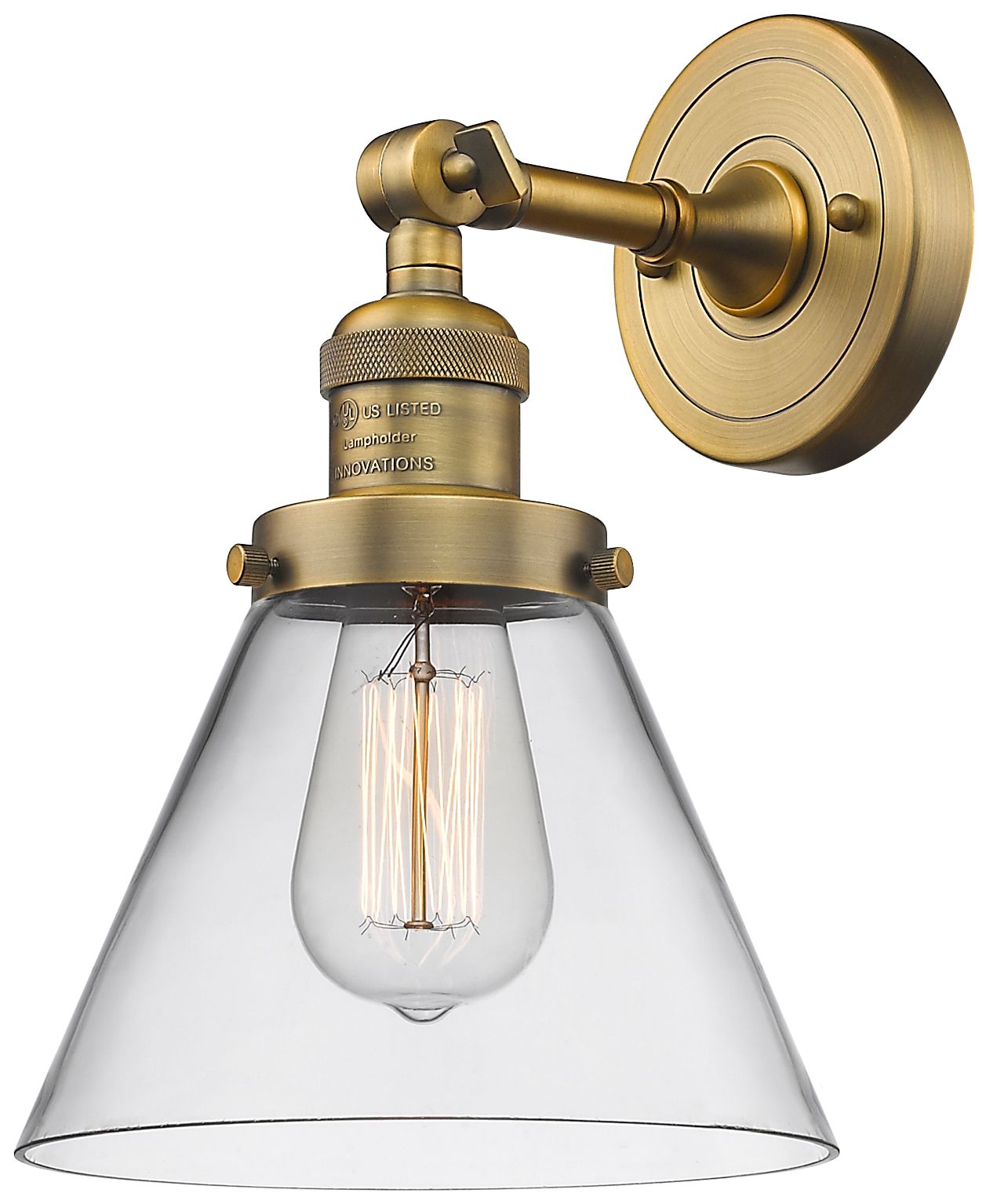 Franklin Restoration Cone 8" LED Sconce - Brass Finish - Clear Shade