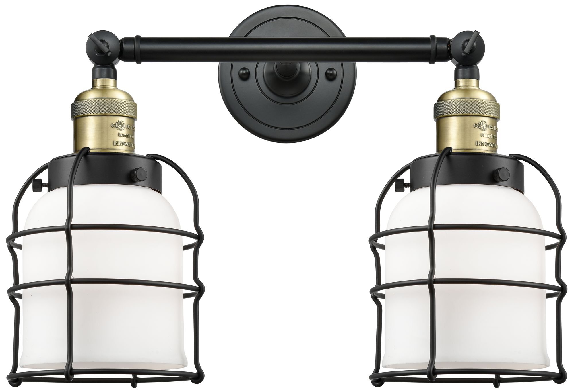 Franklin Bell Cage 16" 2-Light Black Brass Bath Light w/ White Shade