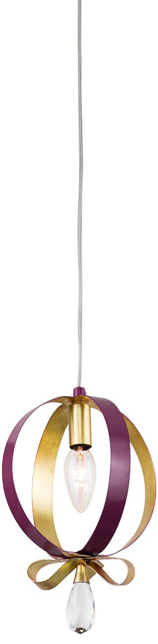 Varaluz Posh 7" Wide Plum and Gold Leaf Round Mini Pendant