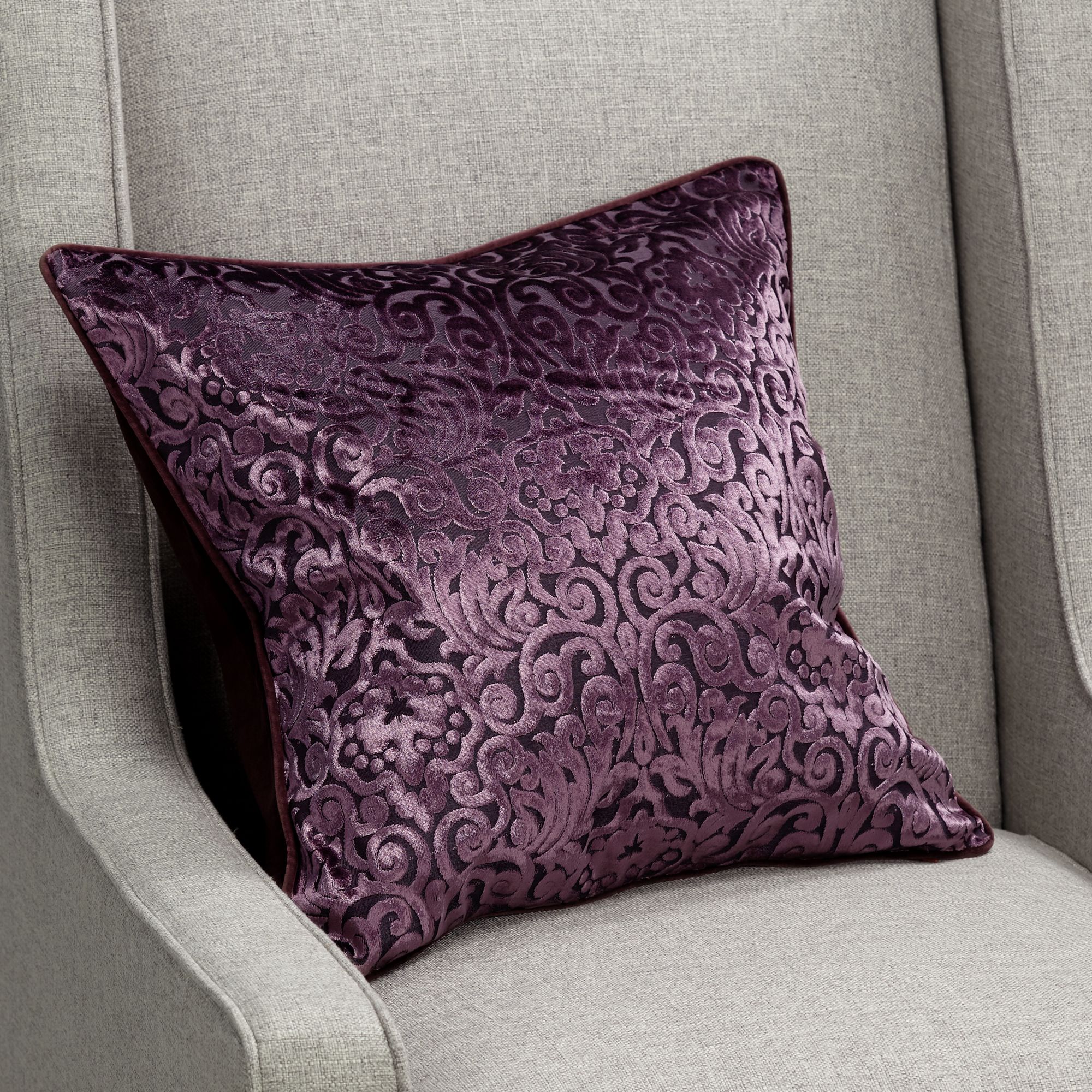 Plum Purple Cut Velvet 20" Square Throw Pillow