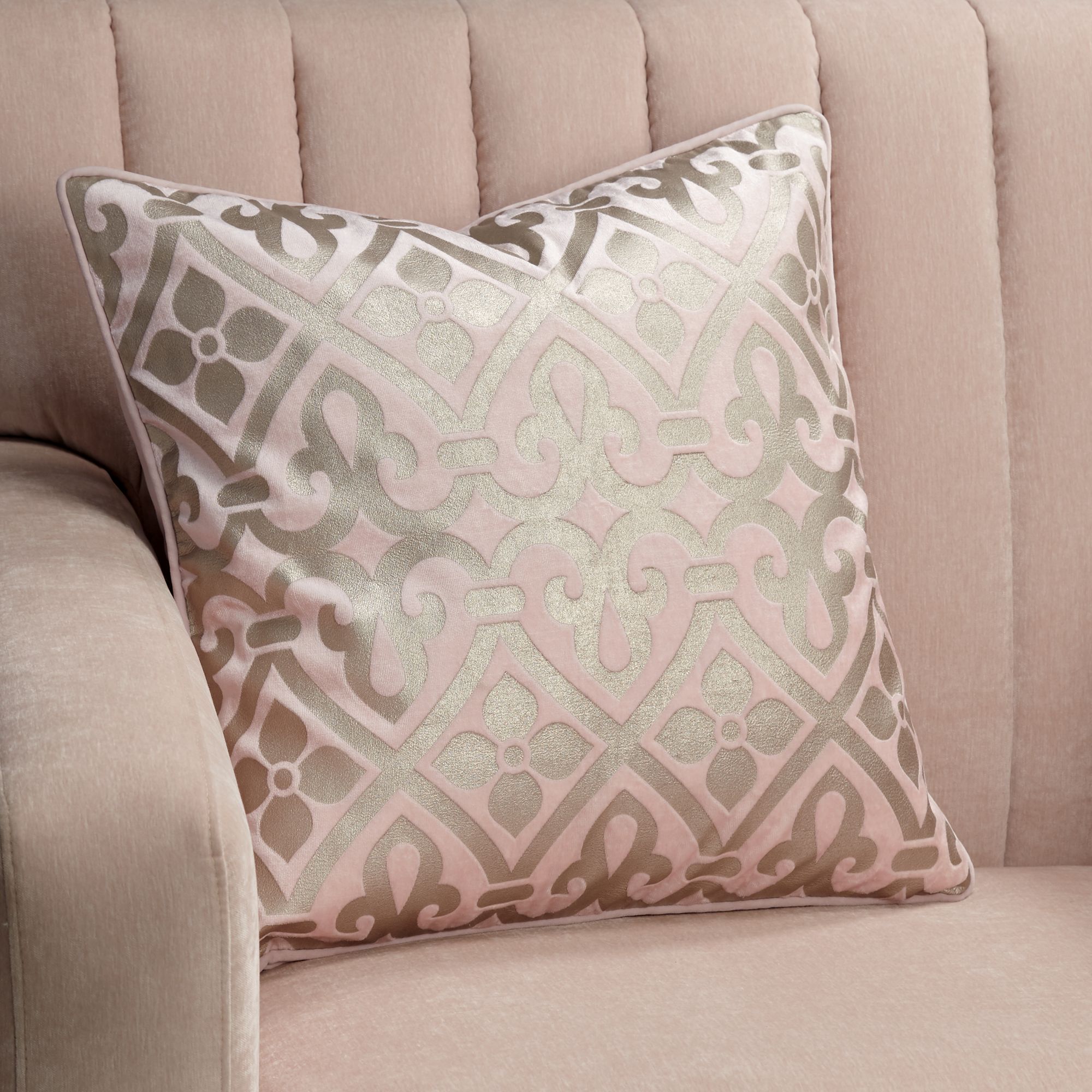 Blush Foil Velvet 20" Square Throw Pillow
