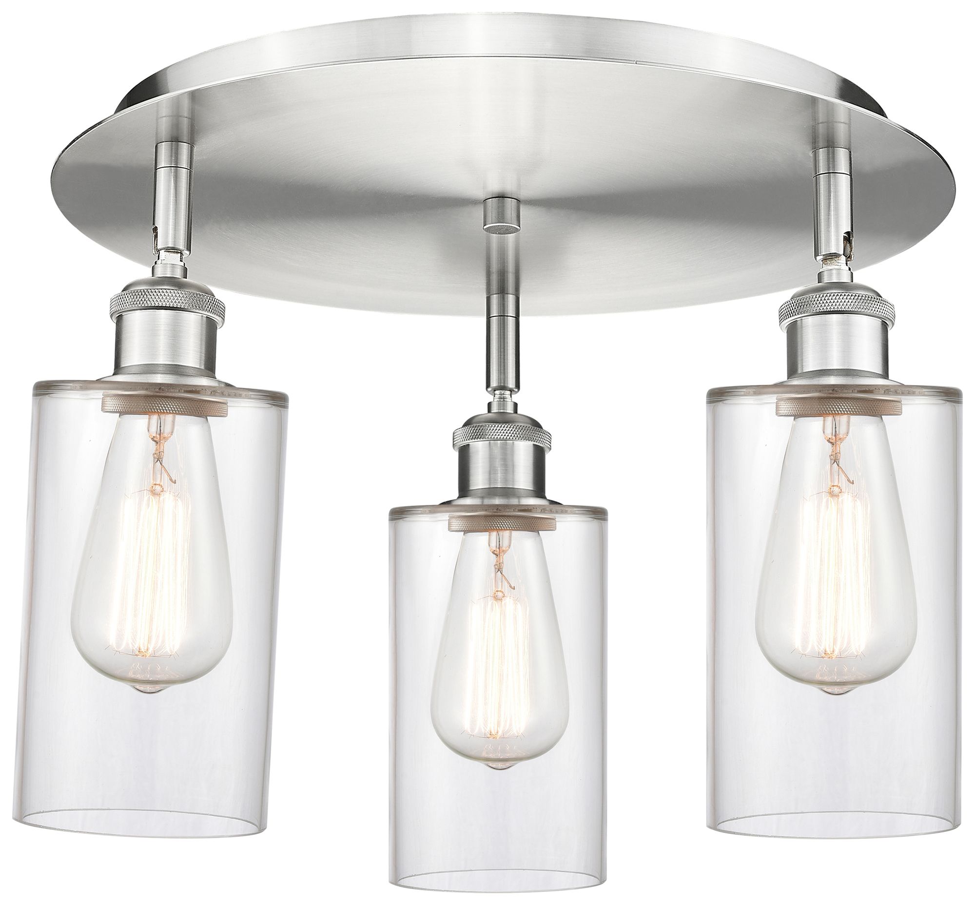 Clymer 15.63" Wide 3 Light Satin Nickel Flush Mount With Clear Glass S