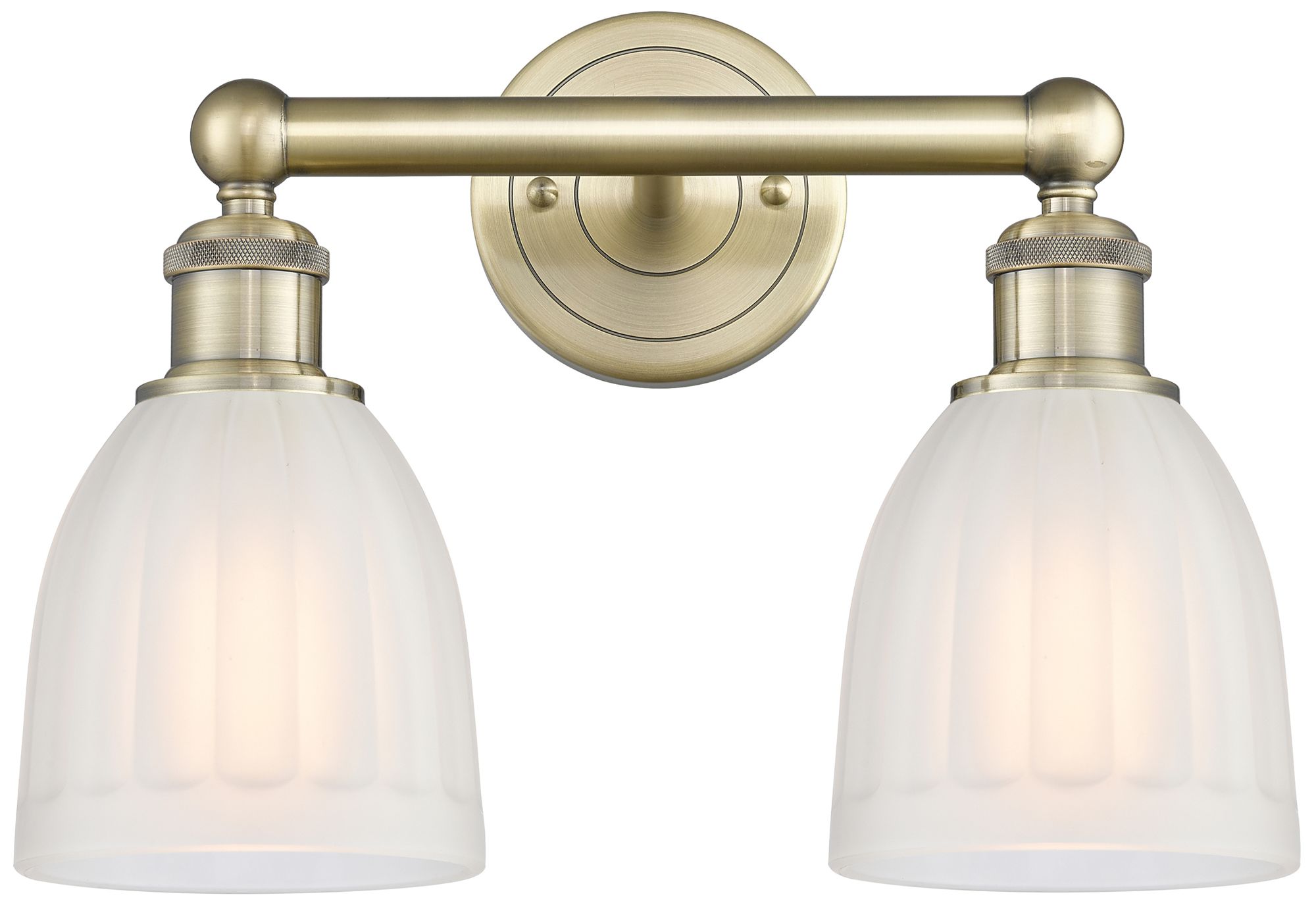 Brookfield 14.75"W 2 Light Antique Brass Bath Vanity Light With White
