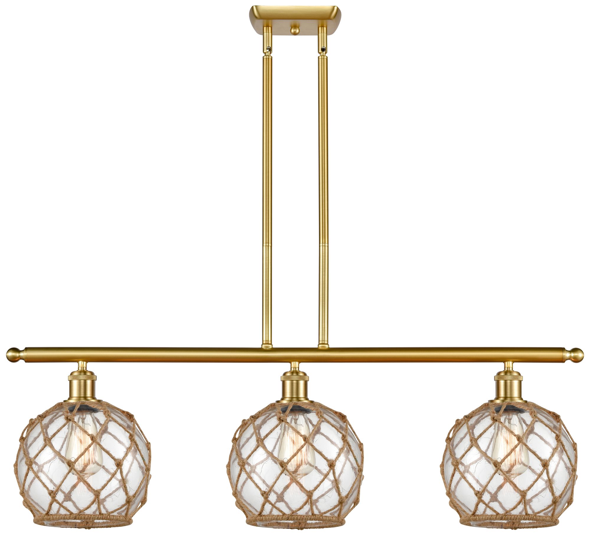 Farmhouse 36"W 3 Light Satin Gold Island Light w/ Clear and Brown Shad