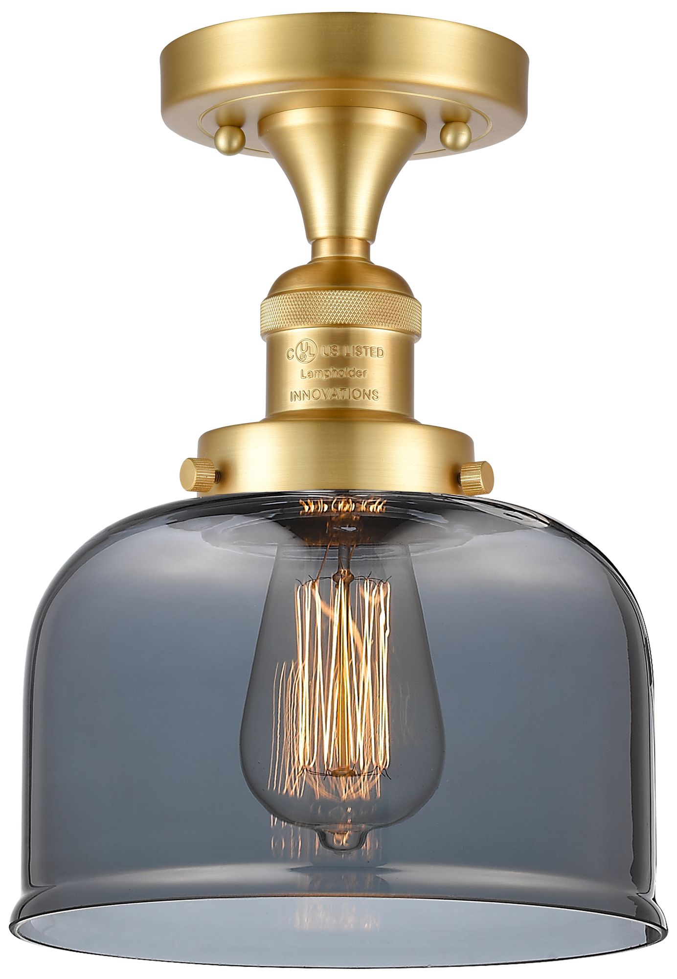 Bell 8" Satin Gold Semi Flush Mount w/ Plated Smoke Shade