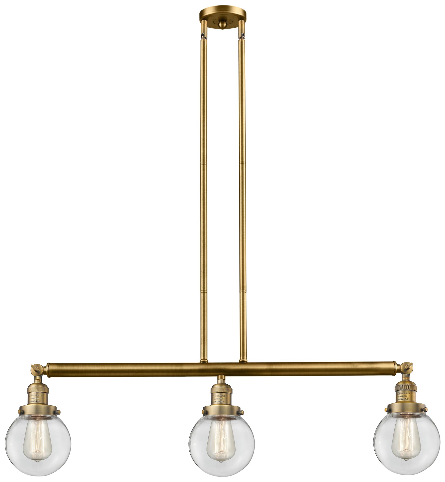 Beacon 3 Light 39" LED Island Light - Brushed Brass - Clear Shade