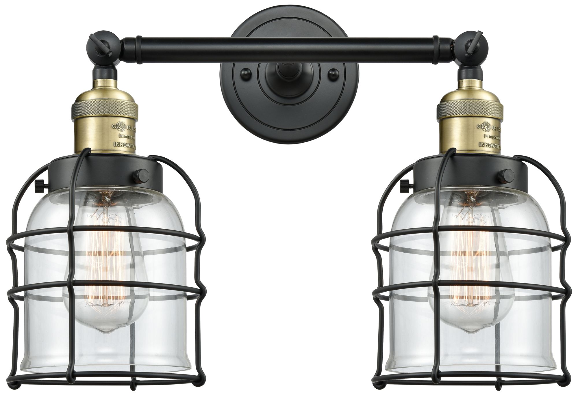 Franklin Bell Cage 16" 2-Light Black Brass Bath Light w/ Clear Shade