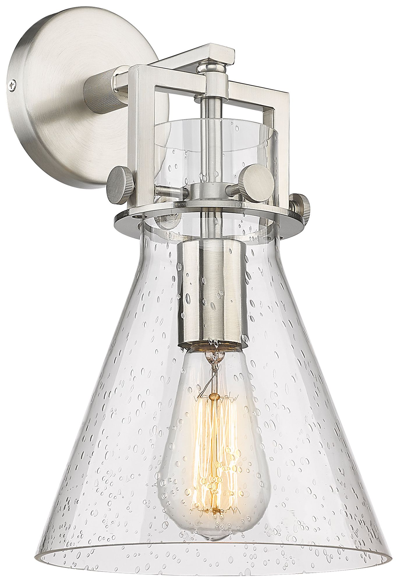 Newton Cone 14" High Satin Nickel Sconce With Seedy Shade
