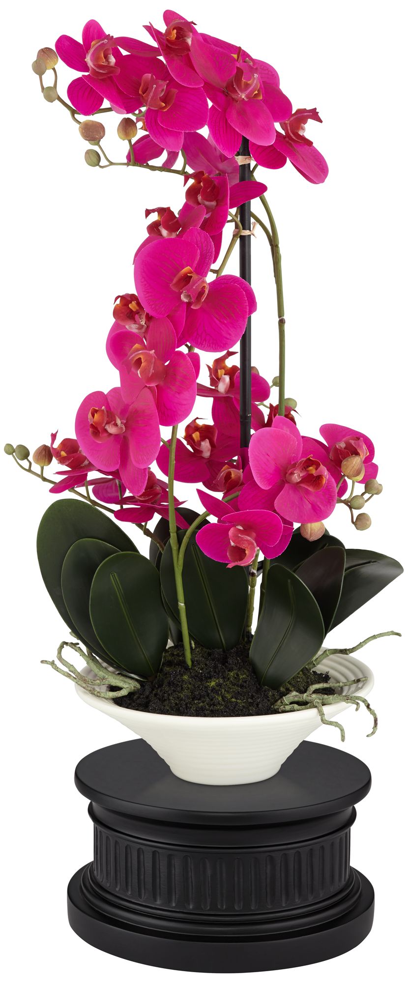 Pink Orchid 24"H Faux Flowers With Black Round Riser