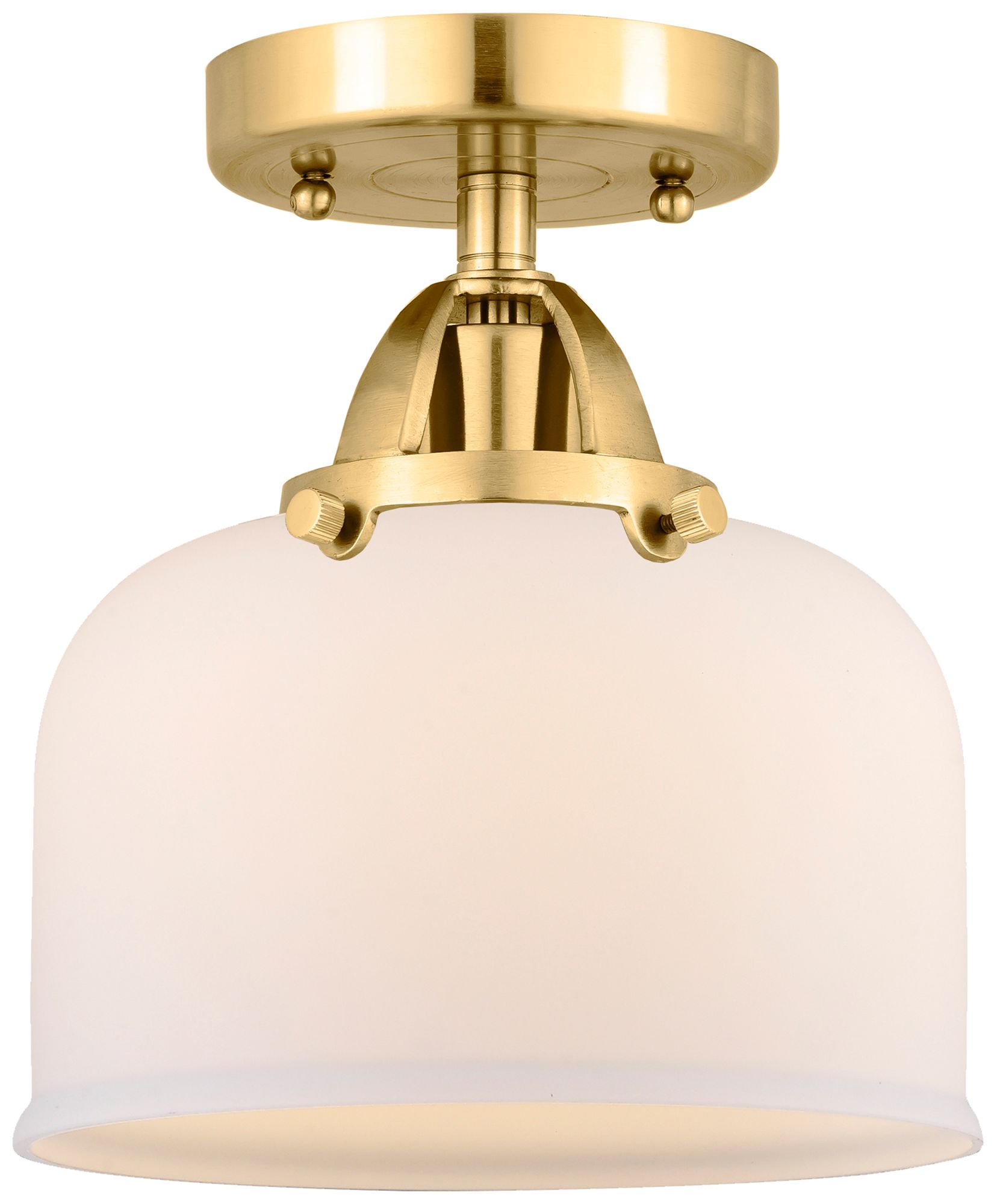 Nouveau 2 Bell 8" LED Semi-Flush Mount - Satin Gold - Matte White Shad