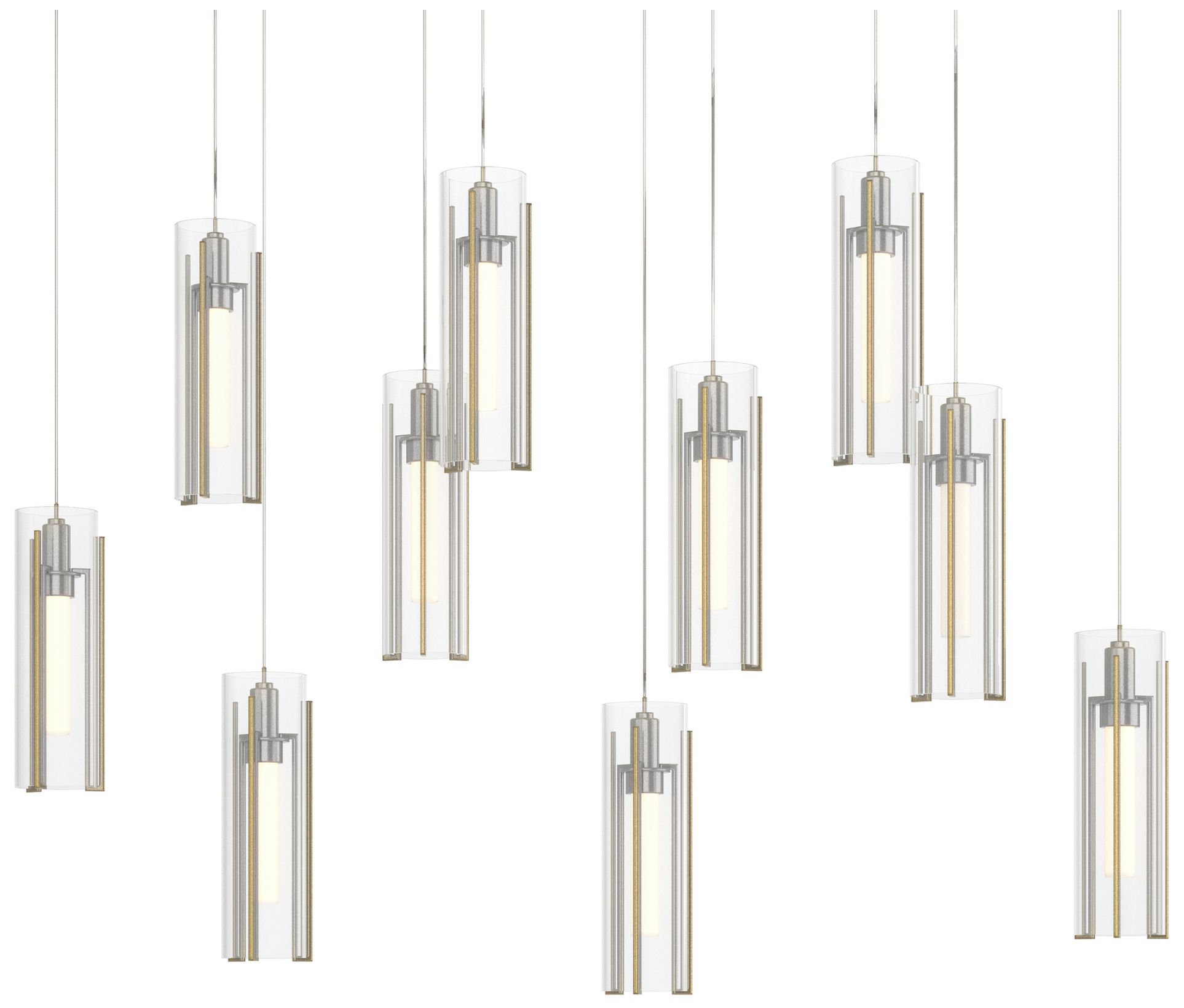 Exos 44.5"W 10-Light Rectangular Modern Brass Long Pendant w/ Clear Sh