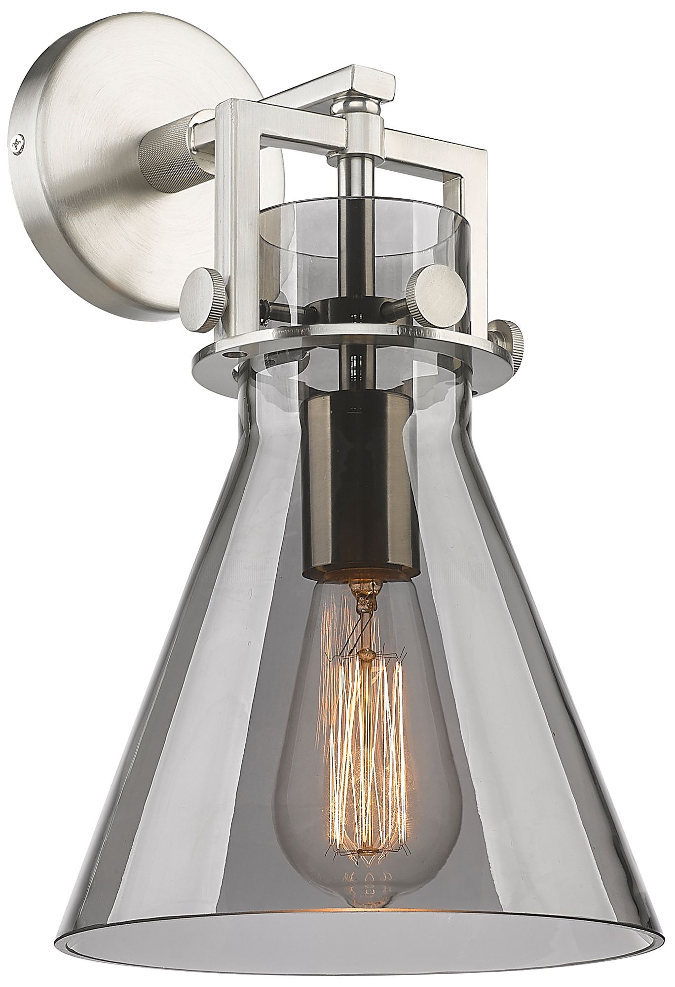 Newton Cone 14" High Satin Nickel Sconce With Smoke Shade