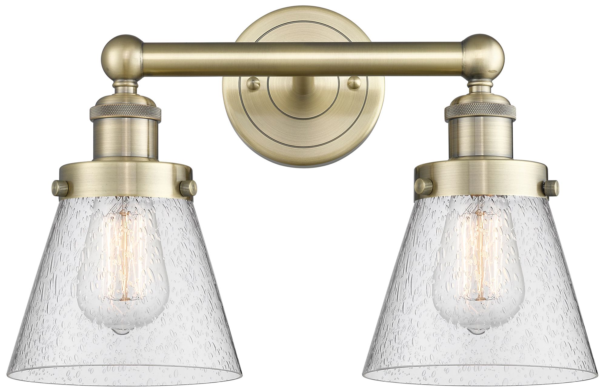 Edison Small Cone 15.5"W 2 Light Antique Brass Bath Light With Seedy S