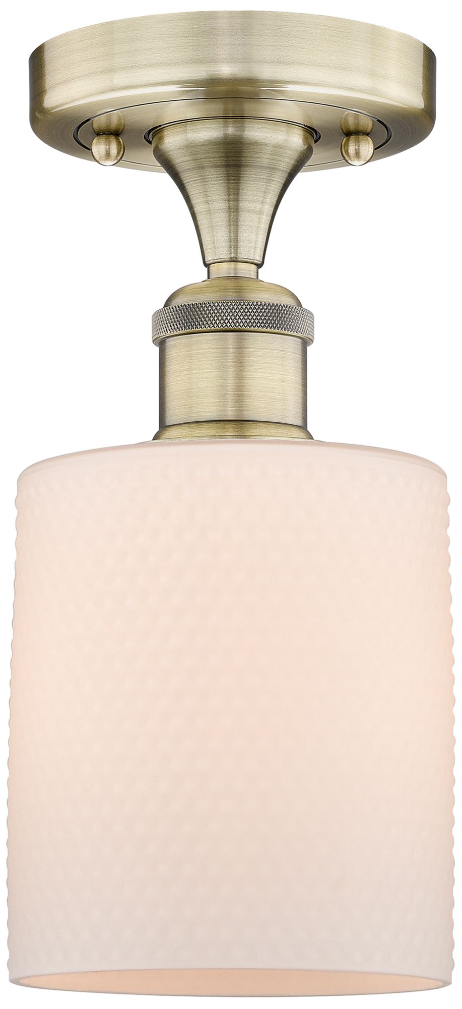 Cobbleskill 5"W Antique Brass Semi.Flush Mount With Matte White Glass