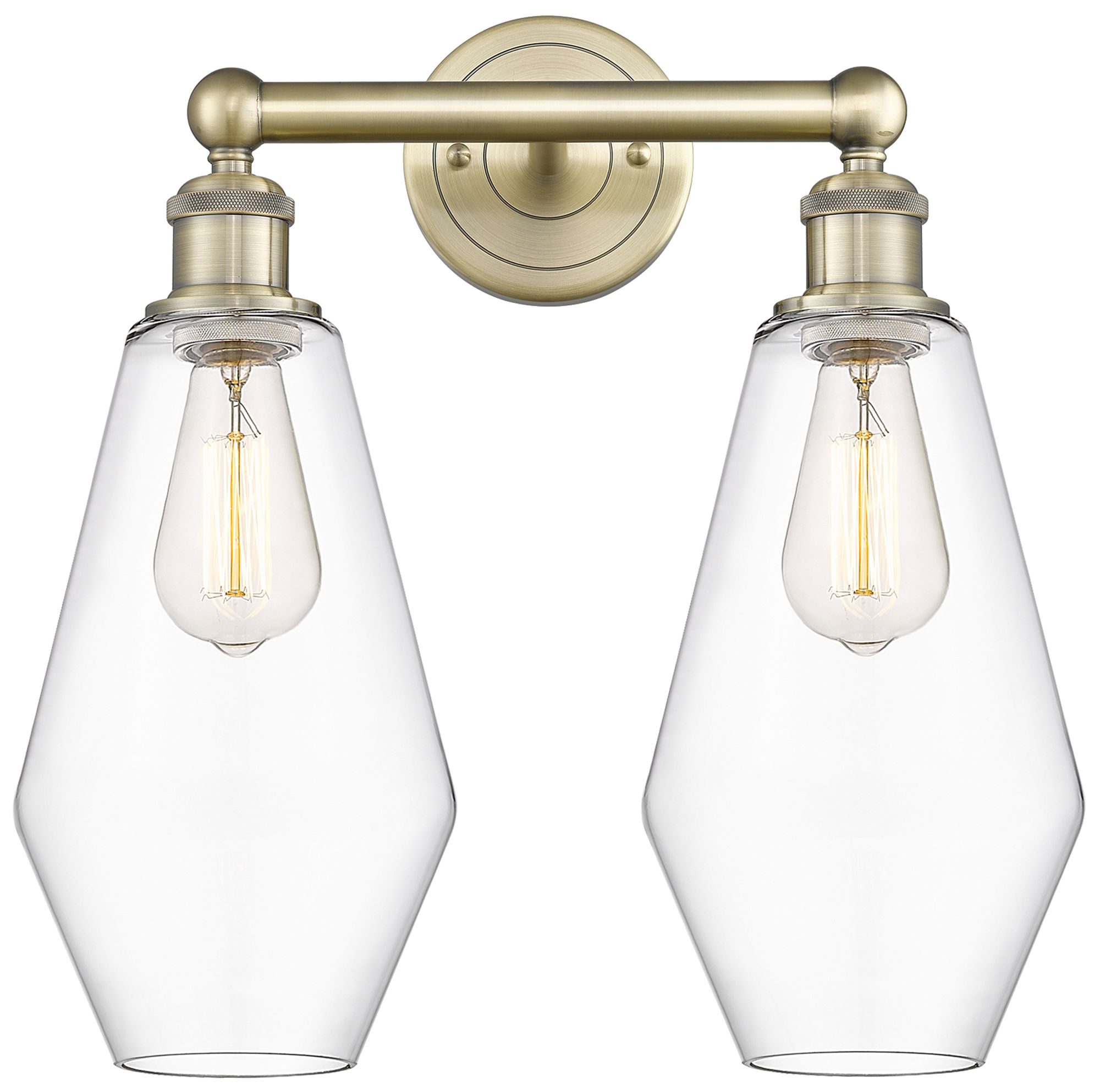 Cindyrella 16"W 2 Light Antique Brass Bath Vanity Light With Clear Sha
