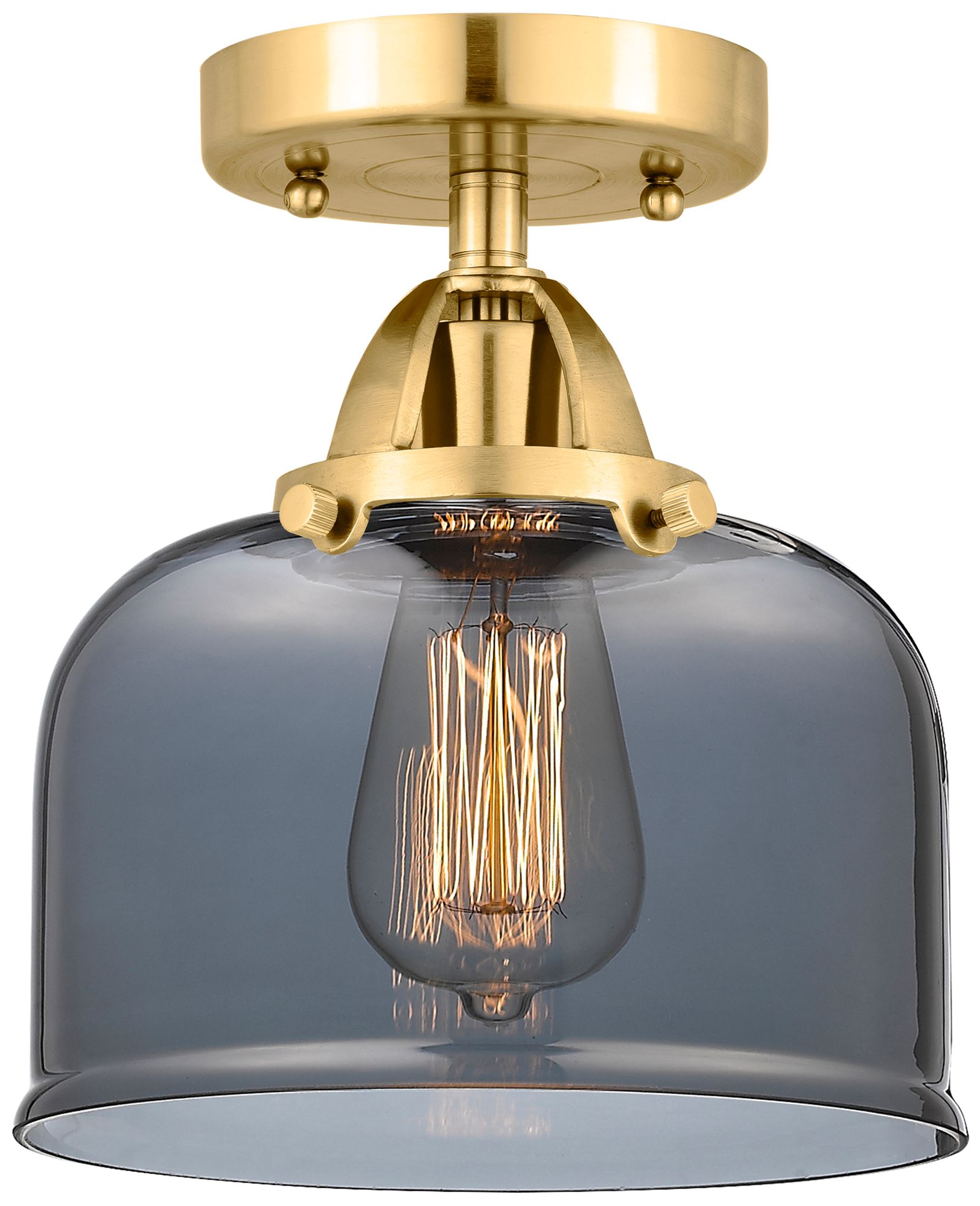 Nouveau 2 Bell 8" LED Semi-Flush Mount - Satin Gold - Plated Smoke Sha