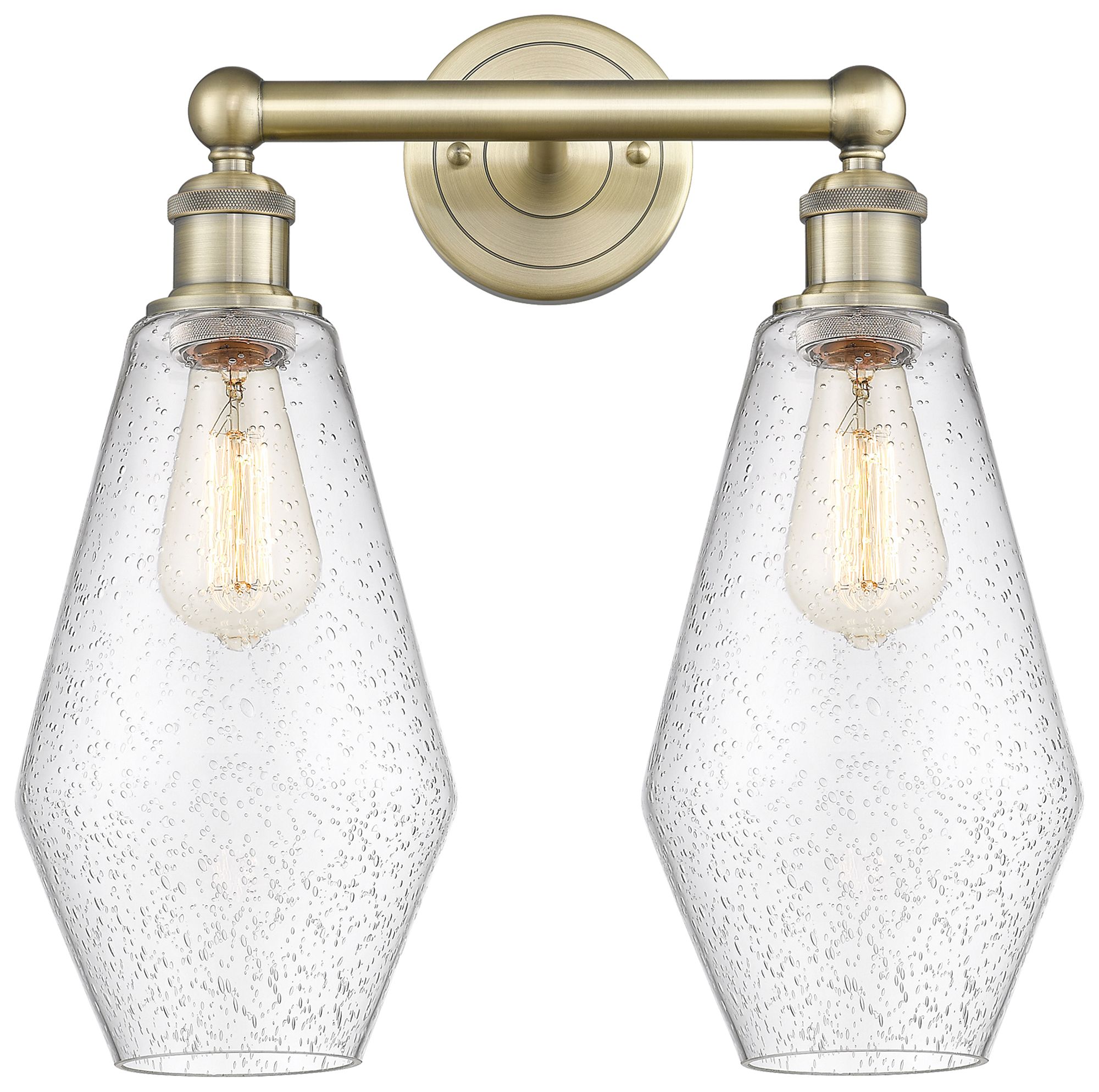 Cindyrella 16"W 2 Light Antique Brass Bath Vanity Light With Seedy Sha