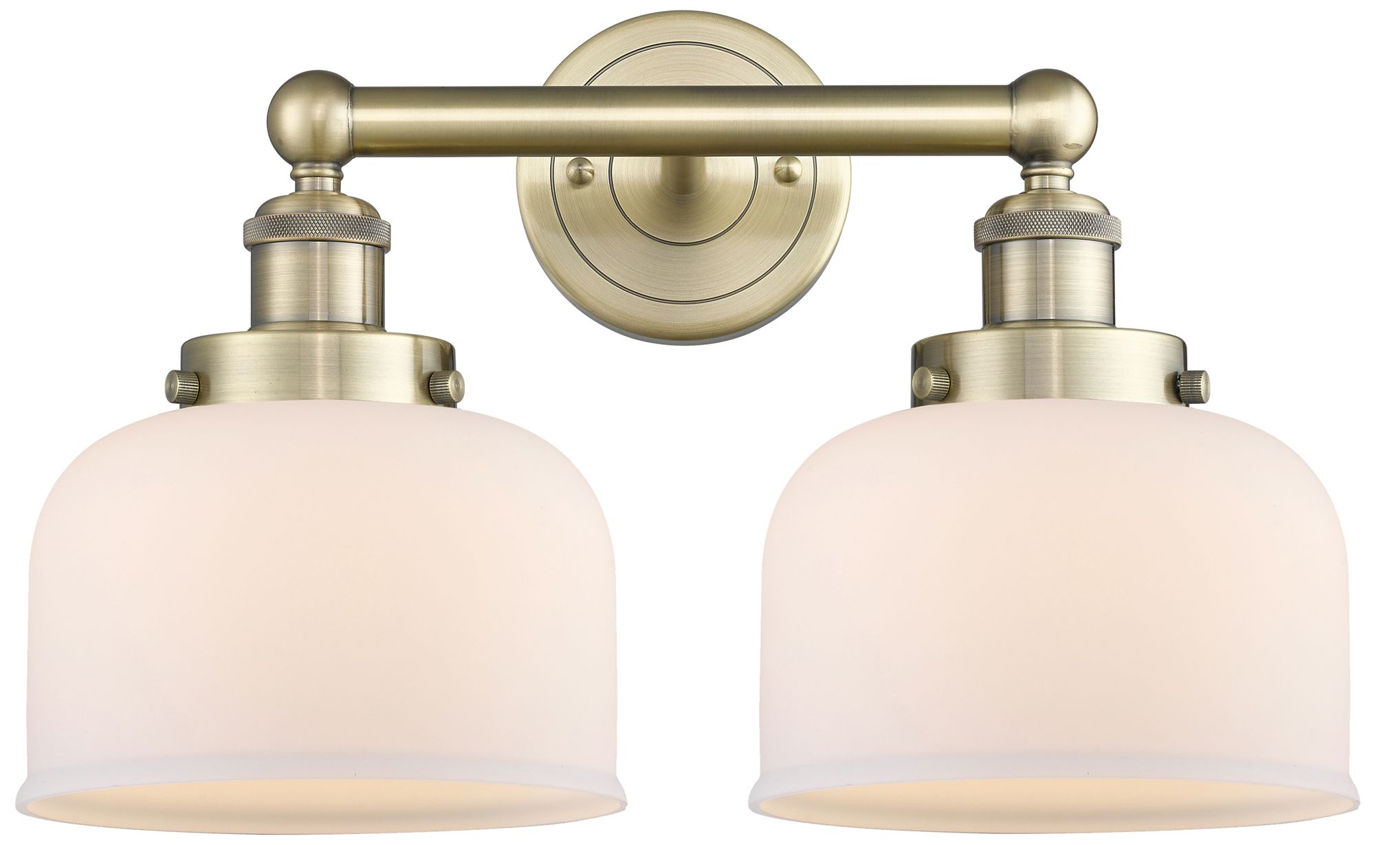 Edison Large Bell 15.5"W 2 Light Antique Brass Bath Light With White S