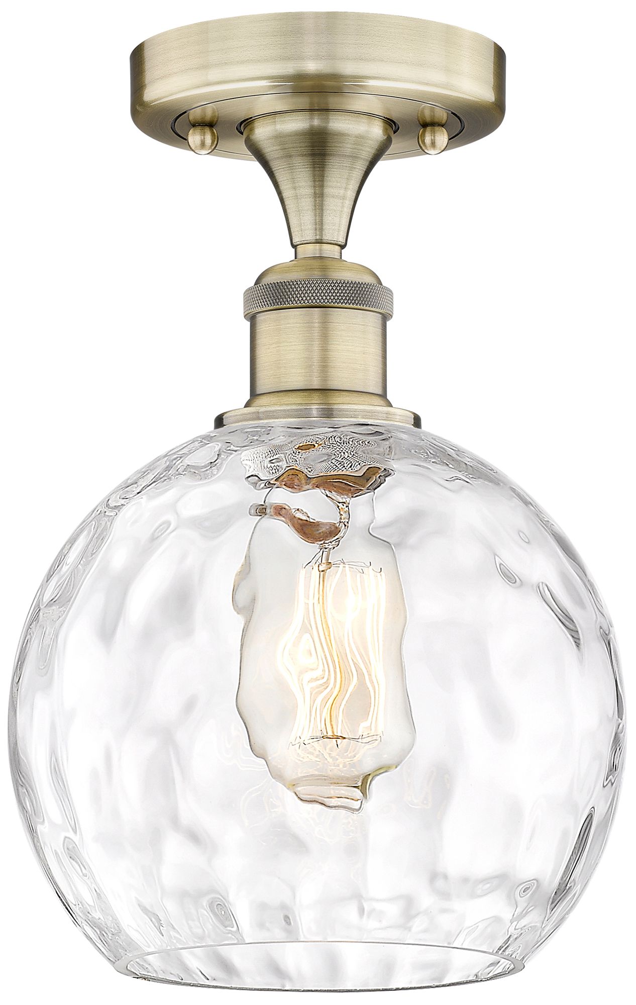 Athens 8" Wide Antique Brass Semi.Flush Mount With Clear Water Glass S