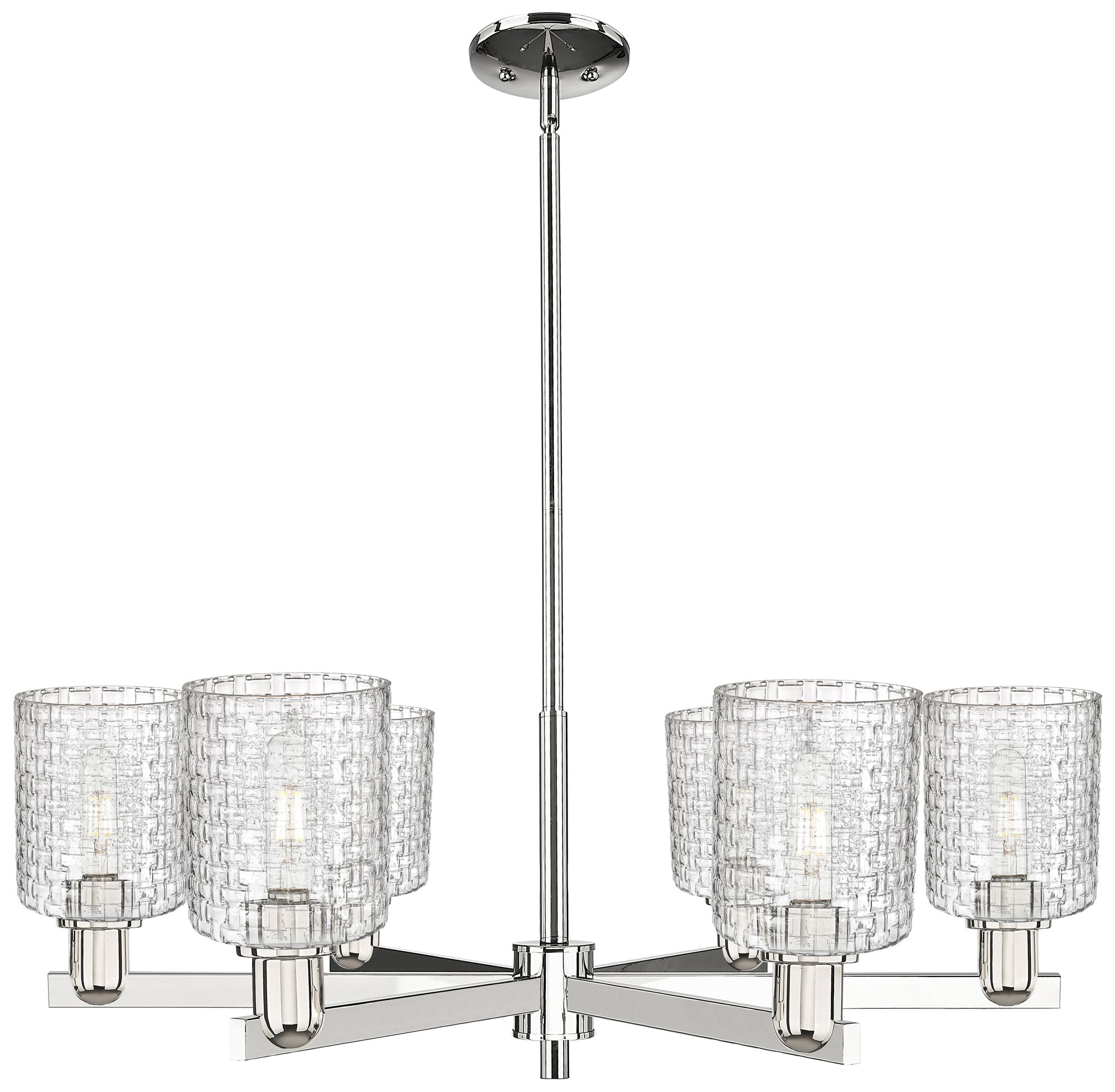 Arcadia Cobbleskill 35"W 6-Lt Polish Nickel Chandelier w/ Basketweave Shade