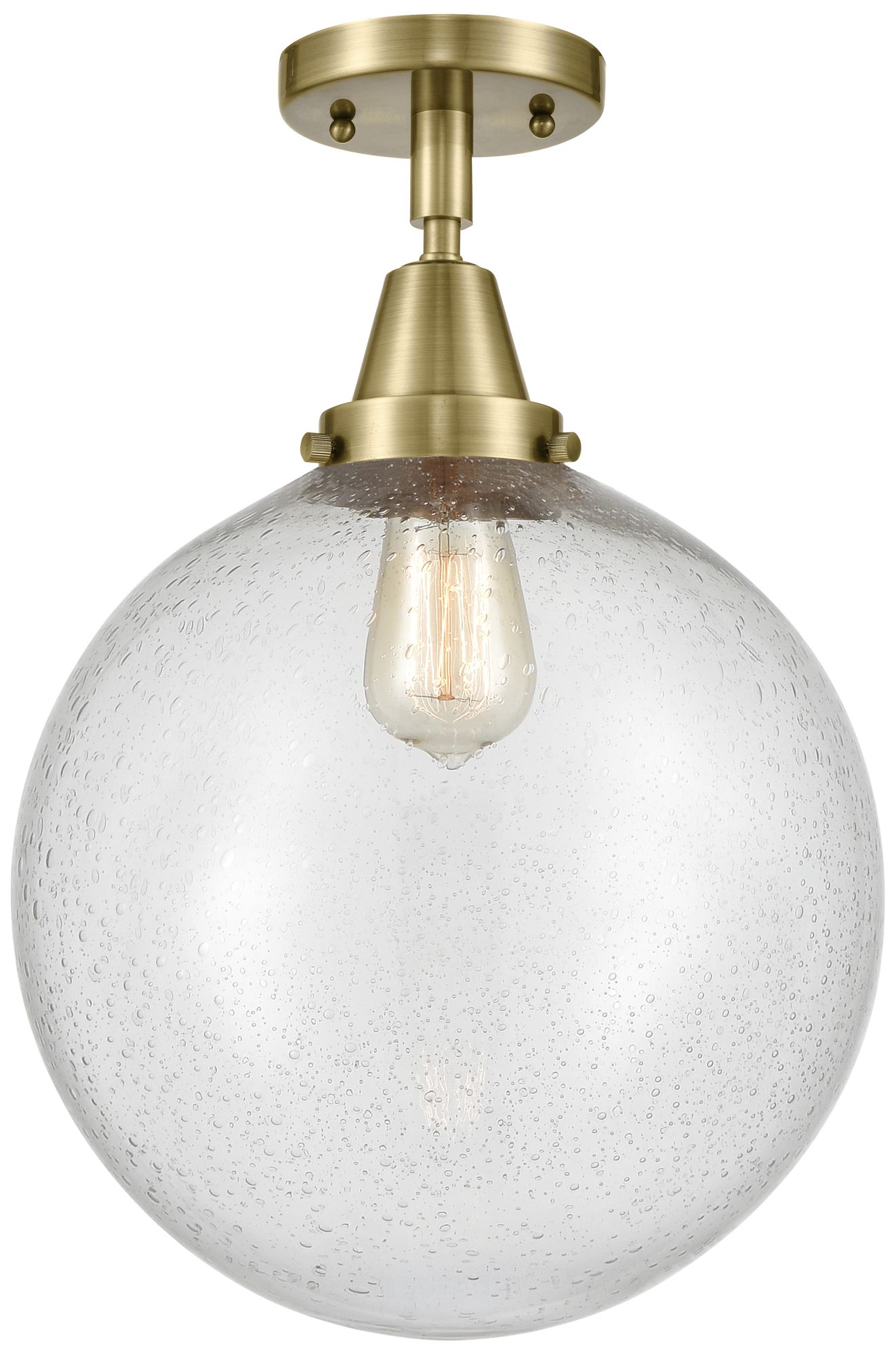 Caden Beacon 12" LED Flush Mount - Antique Brass - Seedy Shade